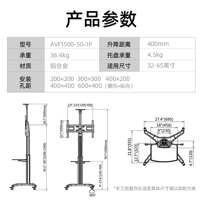 NB AVF1500-50-1P 32-65寸 移动电视支架视频会议显示器推车支架