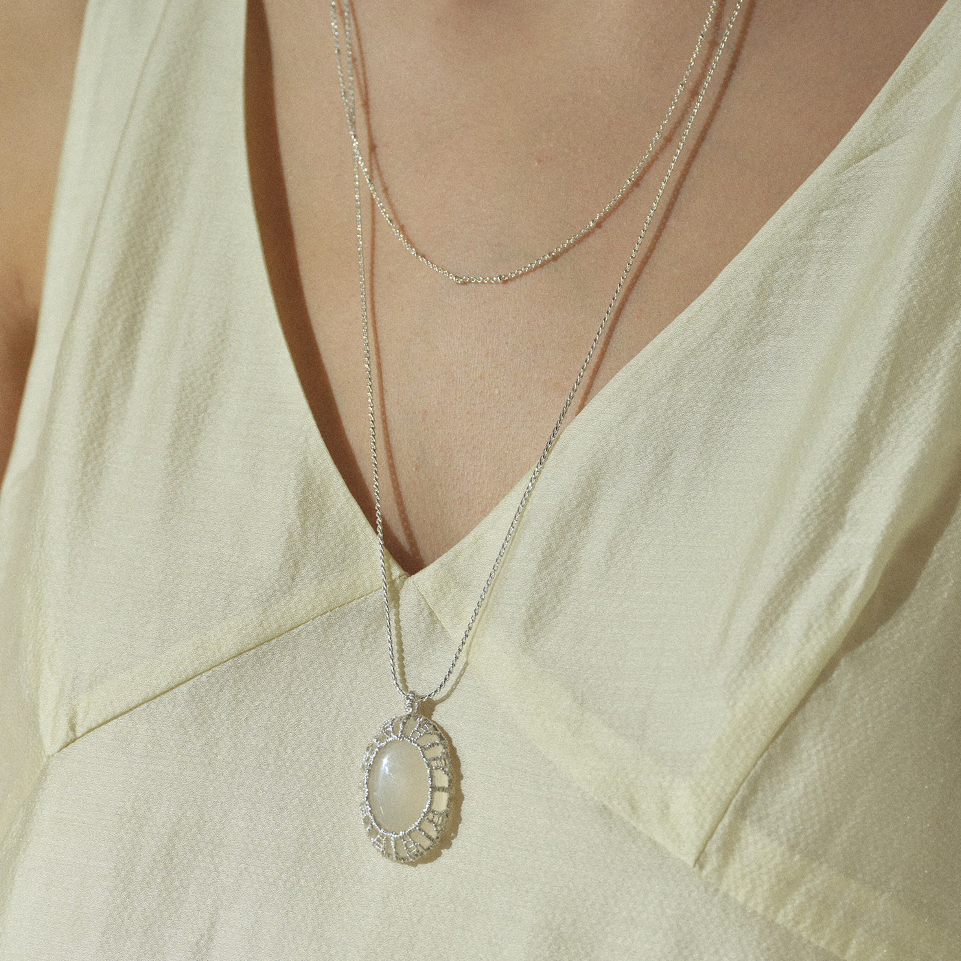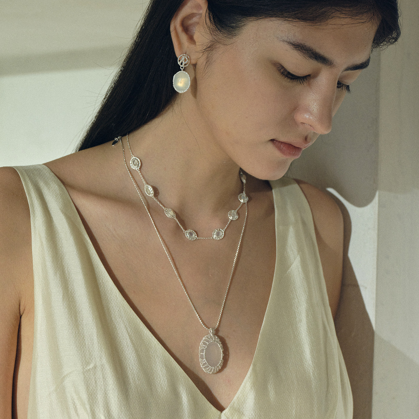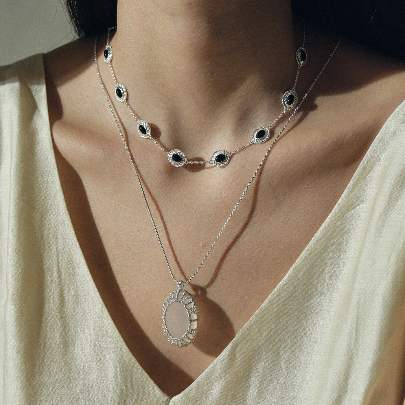 SOFT ROOM蕾丝天然玉髓双链长项链配饰女礼物小众设计高级毛衣链