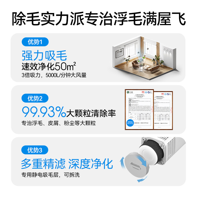 安德迈母婴级除过敏源宠物吸猫毛浮毛空气净化器除臭除尘二手烟