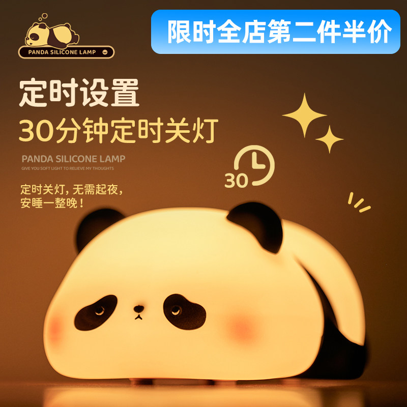 egogo胖达熊猫小夜灯送女生礼物卧室婴儿喂奶氛围柔光拍拍灯摆件