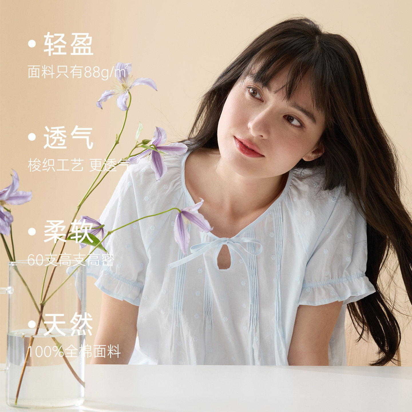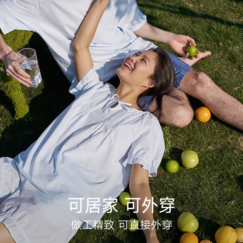 【100%纯棉睡衣】曼妮芬棉质生活60支棉春夏短袖短裤套装女士睡衣