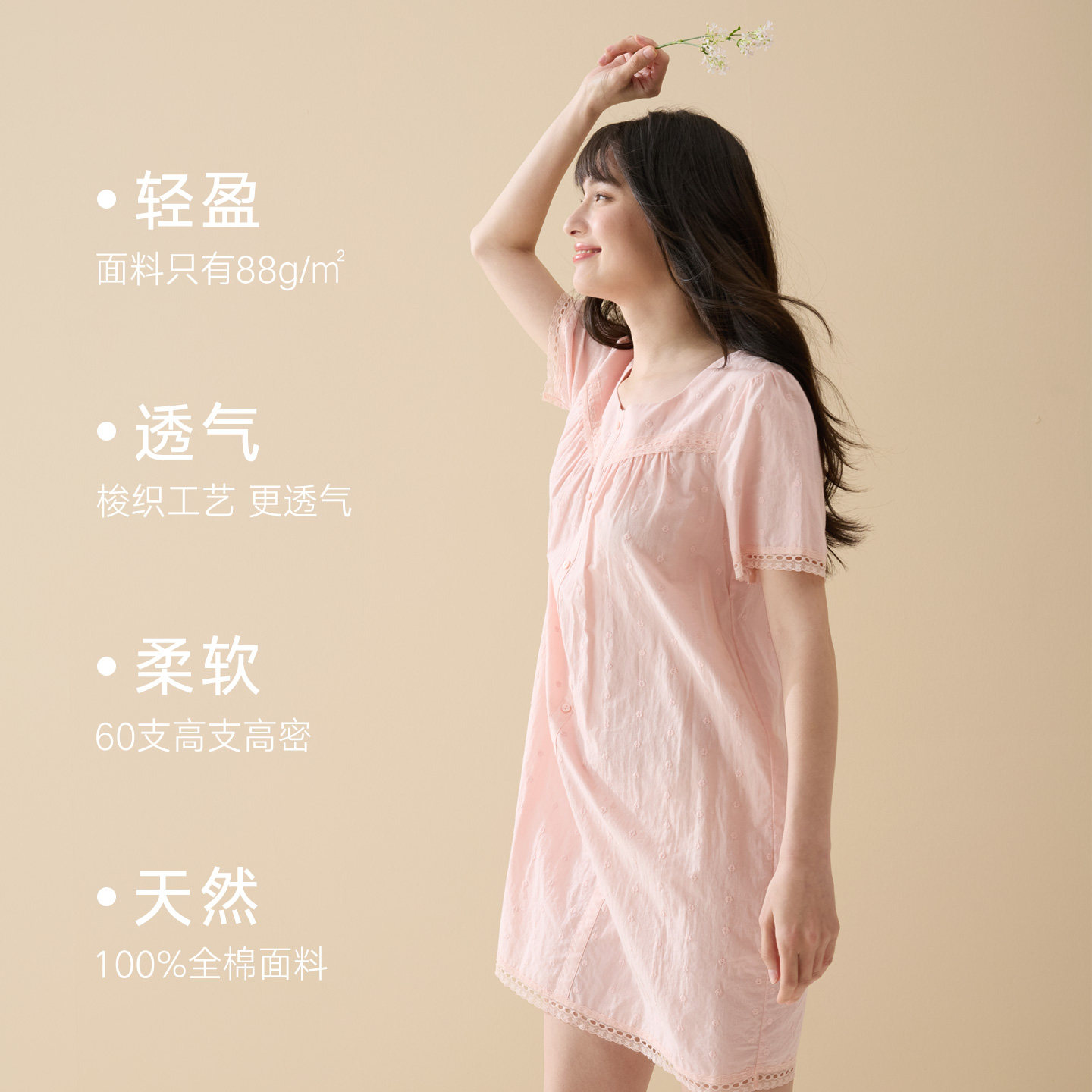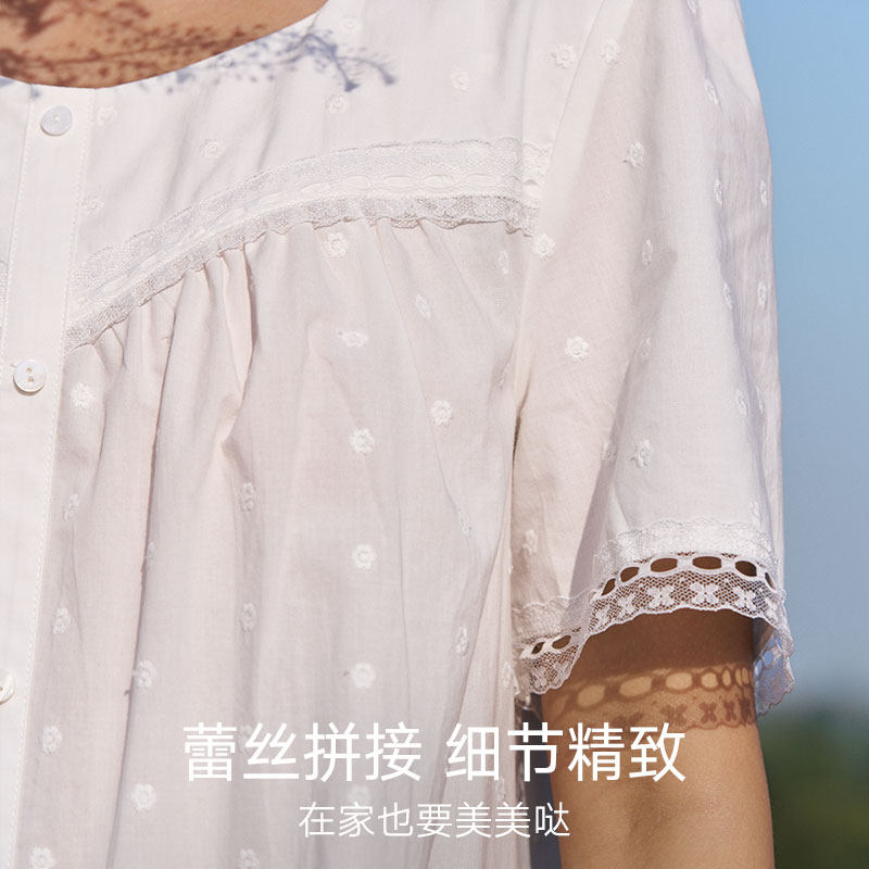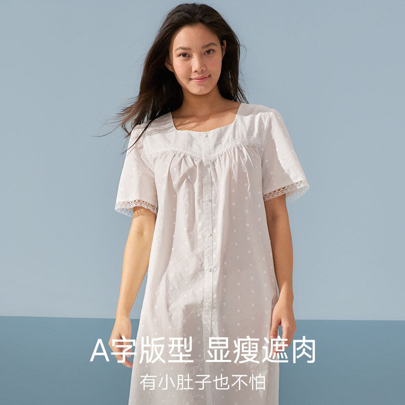 曼妮芬棉质生活60支纯棉睡衣女蕾丝花边家居服2026年春夏女士睡裙
