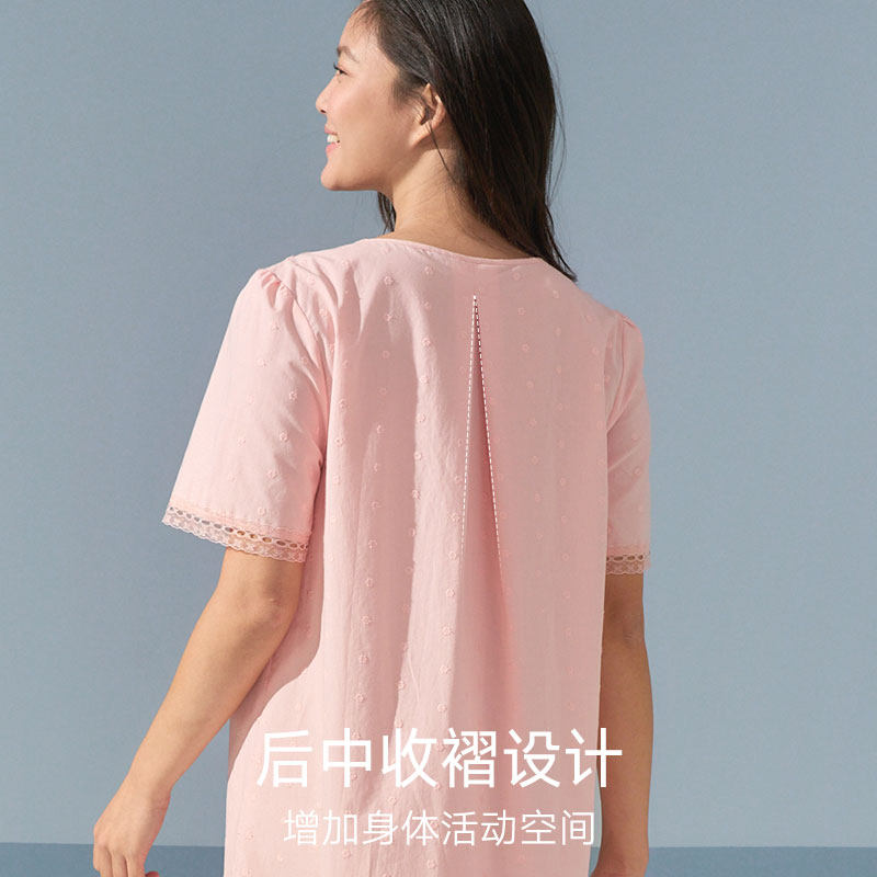 三福睡裙女款春夏季净雪花棉抗菌睡衣甜美印花宽松趣味短袖家居服