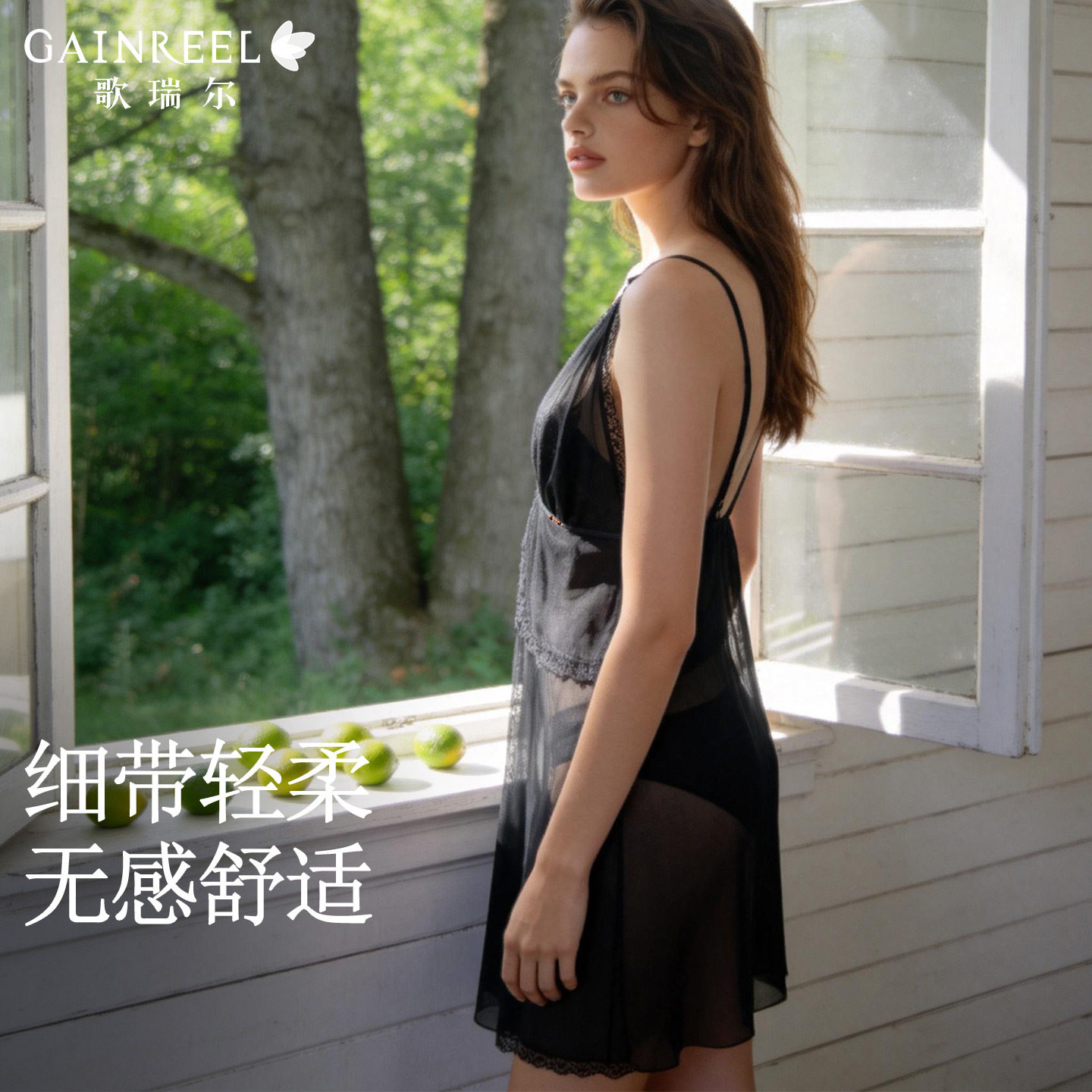 歌瑞尔吊带睡裙性感蕾丝睡衣法式网纱轻薄透气柔软家居服夏季新款