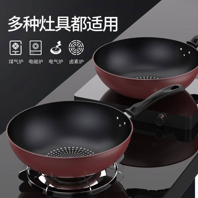 韩国麦饭石不粘锅炒锅家用原装进口电磁炉燃气灶专用不沾锅炒菜锅