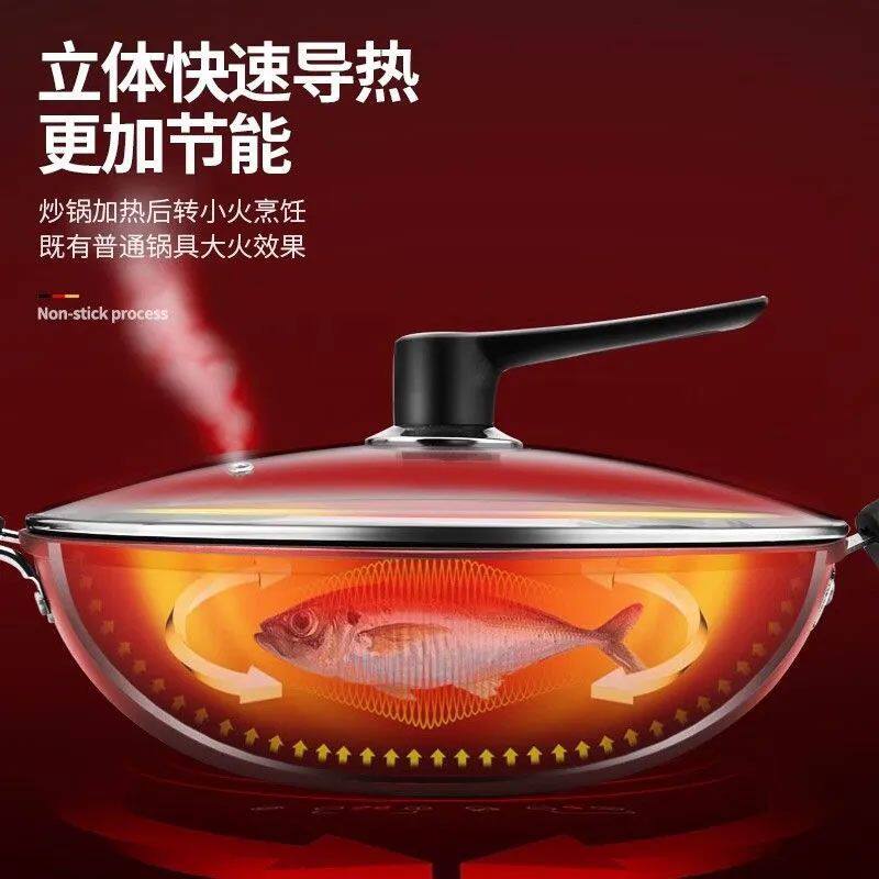 德国不粘炒锅不粘锅家用平底锅电磁炉燃气灶锅具炒菜圆底轻便烹饪