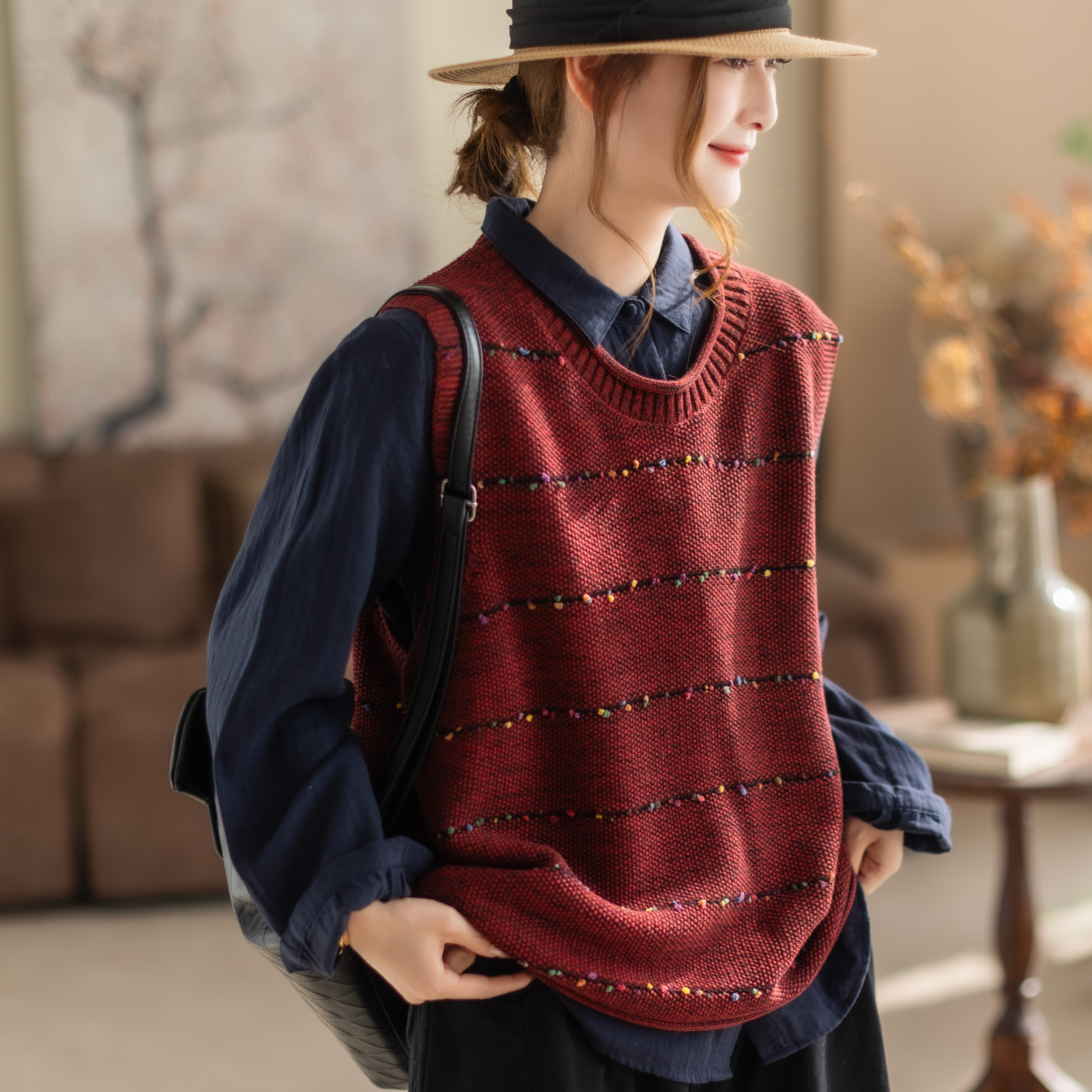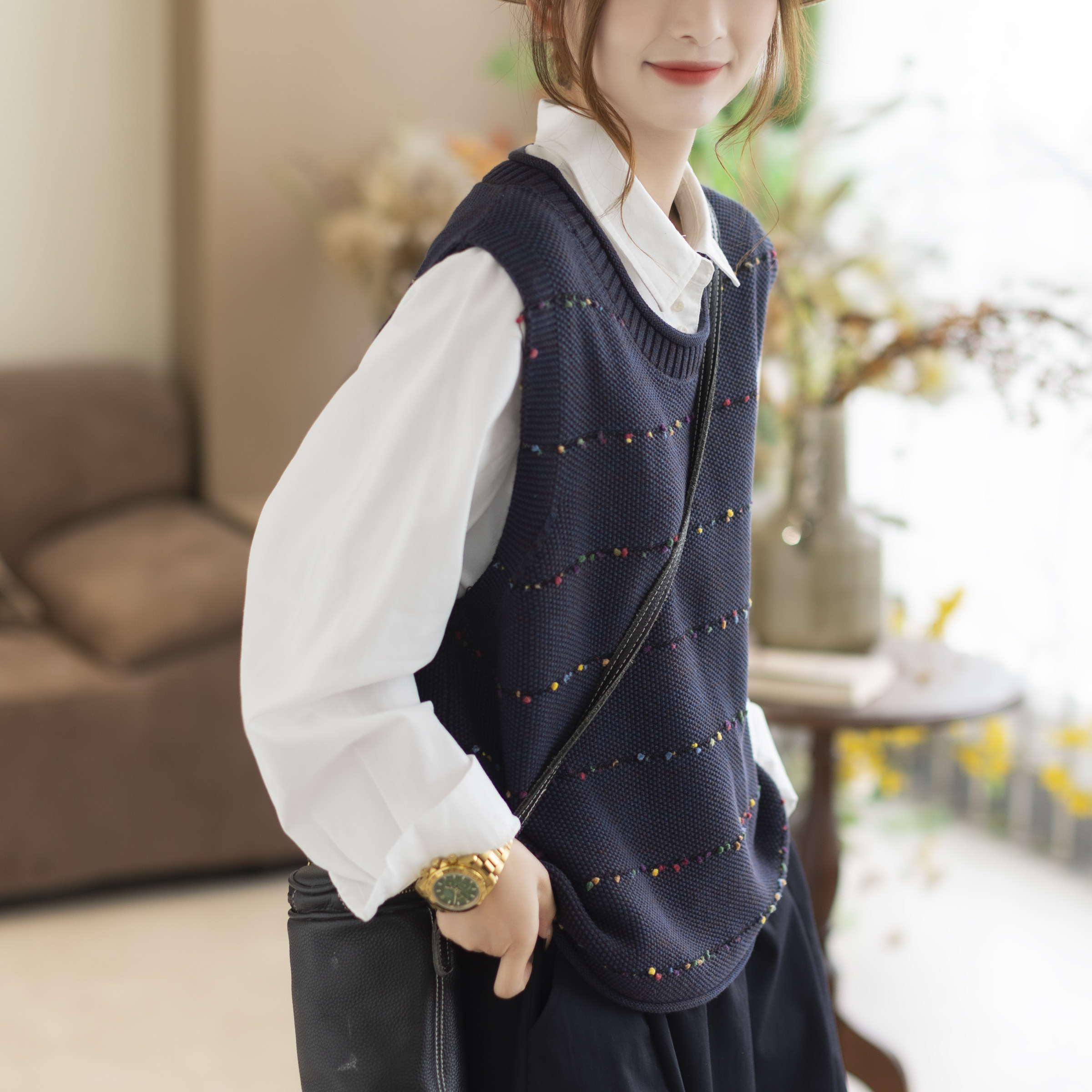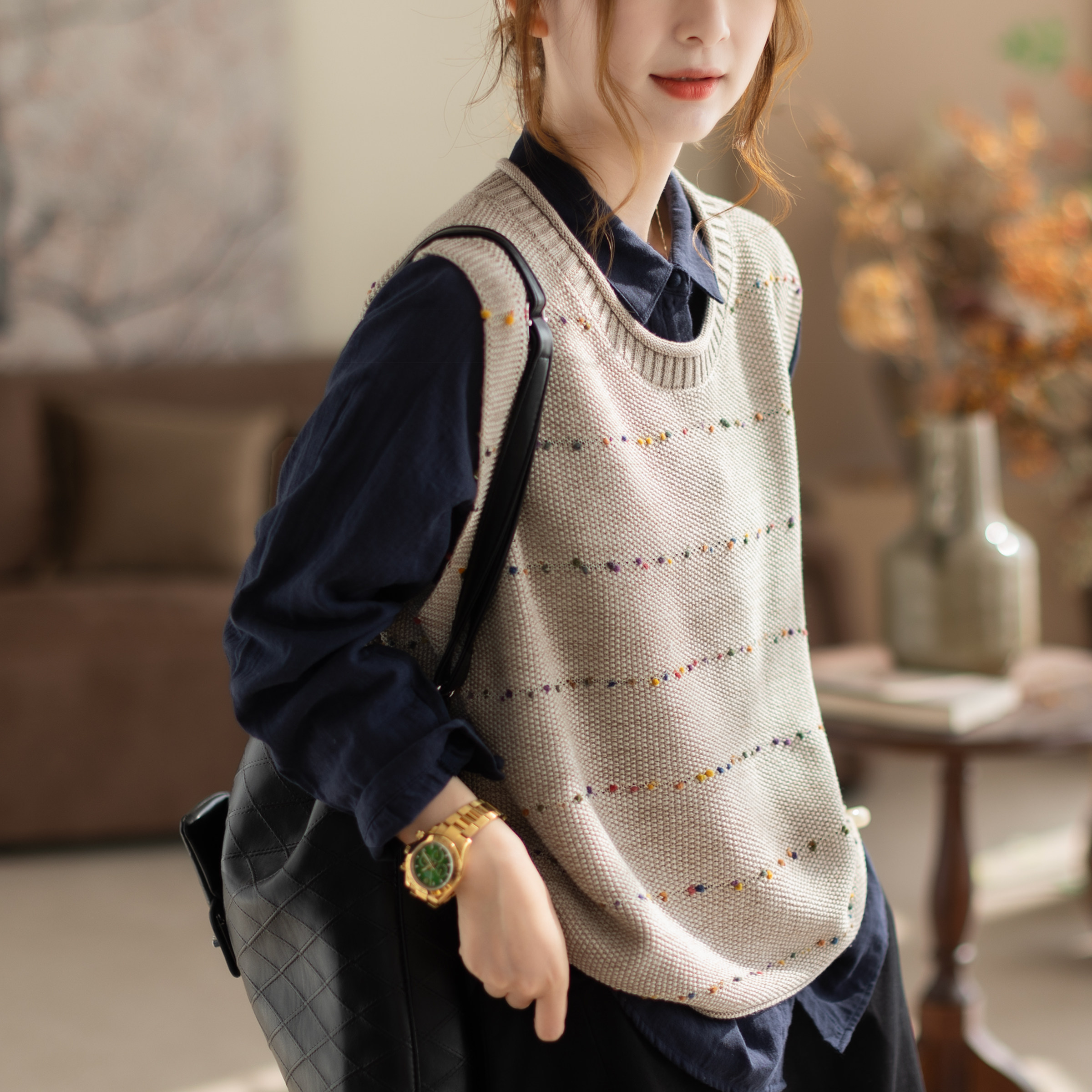 2026新款春秋马甲女圆领气质无袖坎肩宽松拼接百搭女装上衣马夹