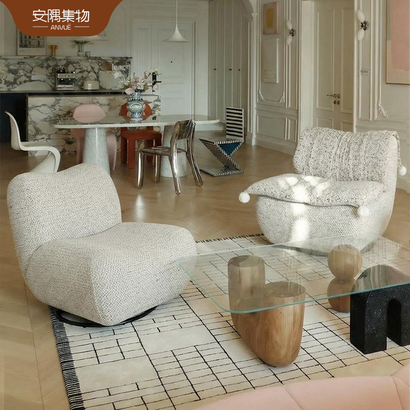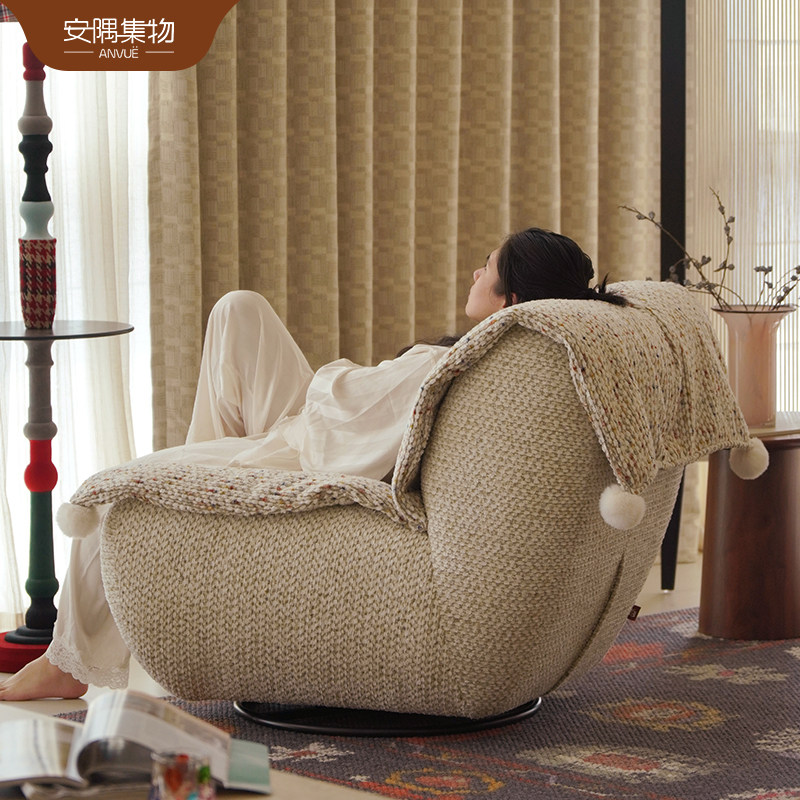 安隅集物布蕾娜小丑沙发奶油风休闲懒人旋转布艺小户型单人沙发