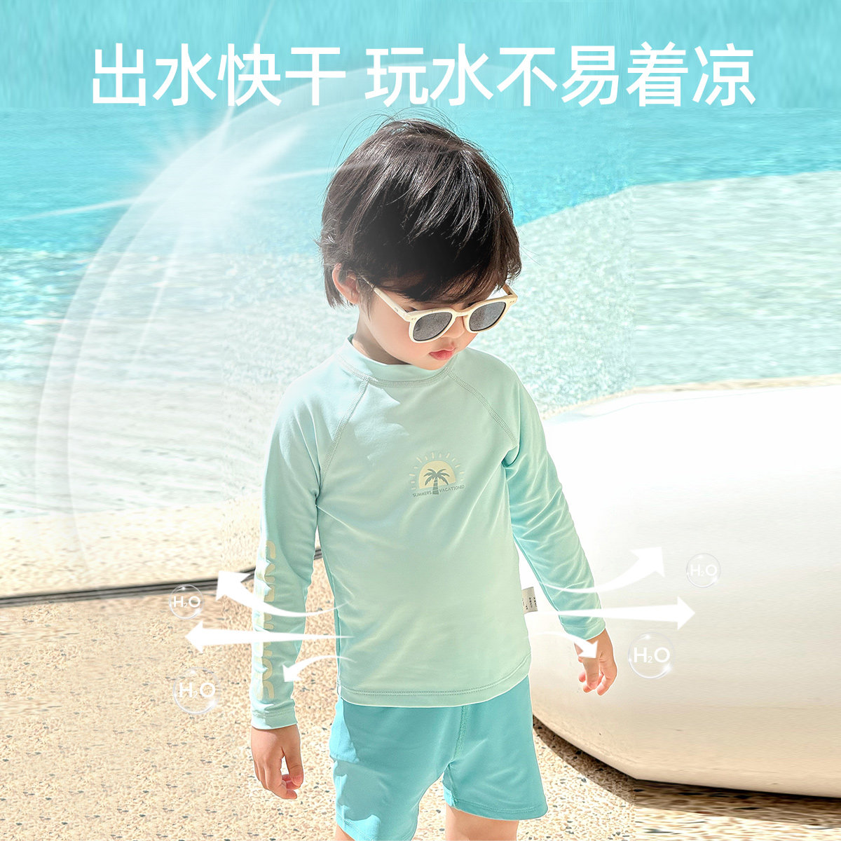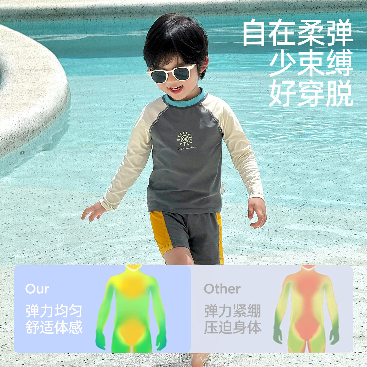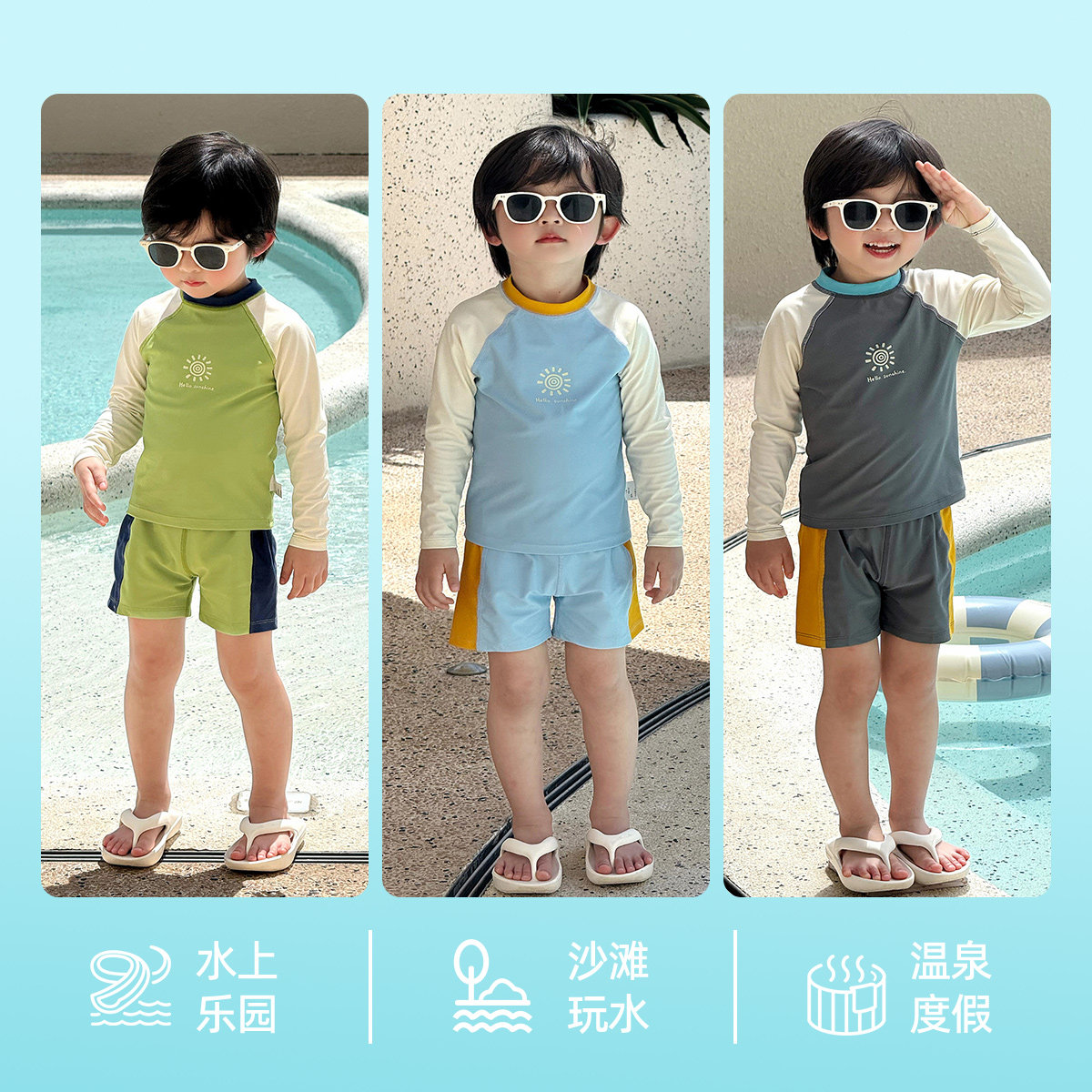 婧麒男童泳装儿童游泳衣分体泳衣2026夏季新款男孩长袖防晒泳衣裤