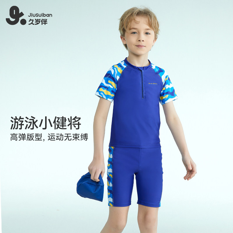 久岁伴儿童泳衣裤男童分体a类夏季薄短袖泳衣中小童宝宝时尚洋气