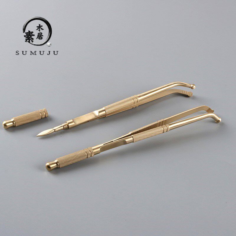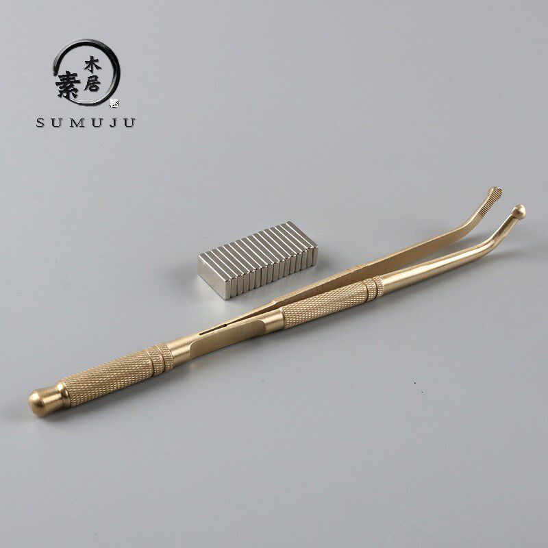 加厚纯铜茶夹功夫茶具茶杯夹子喝茶叶镊子茶盘茶道零配件茶刀茶针