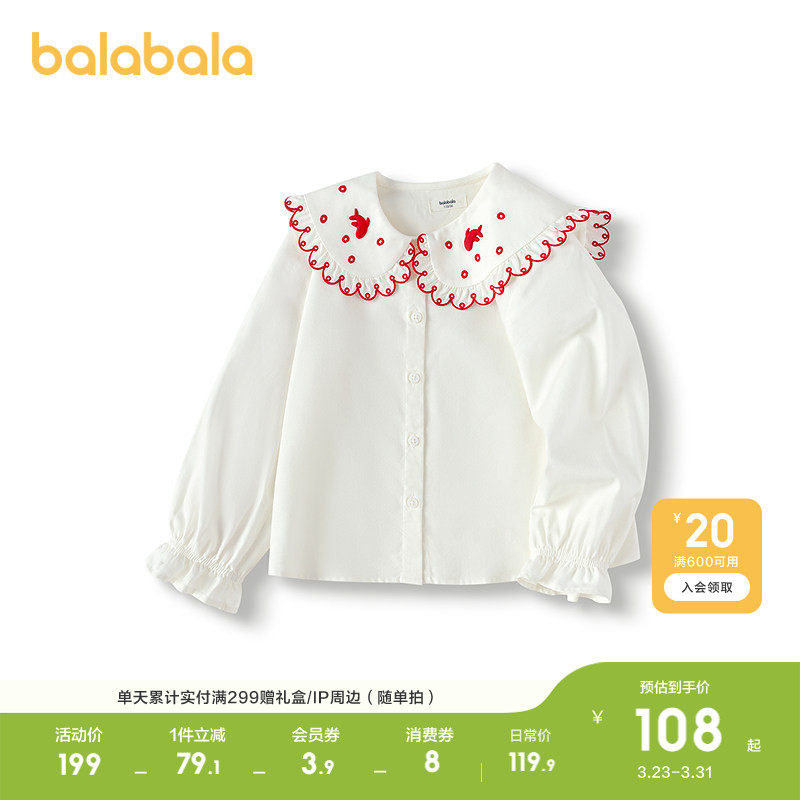 巴拉巴拉童装儿童长袖衬衫女童上衣2026休闲春秋装绣花时尚百搭潮