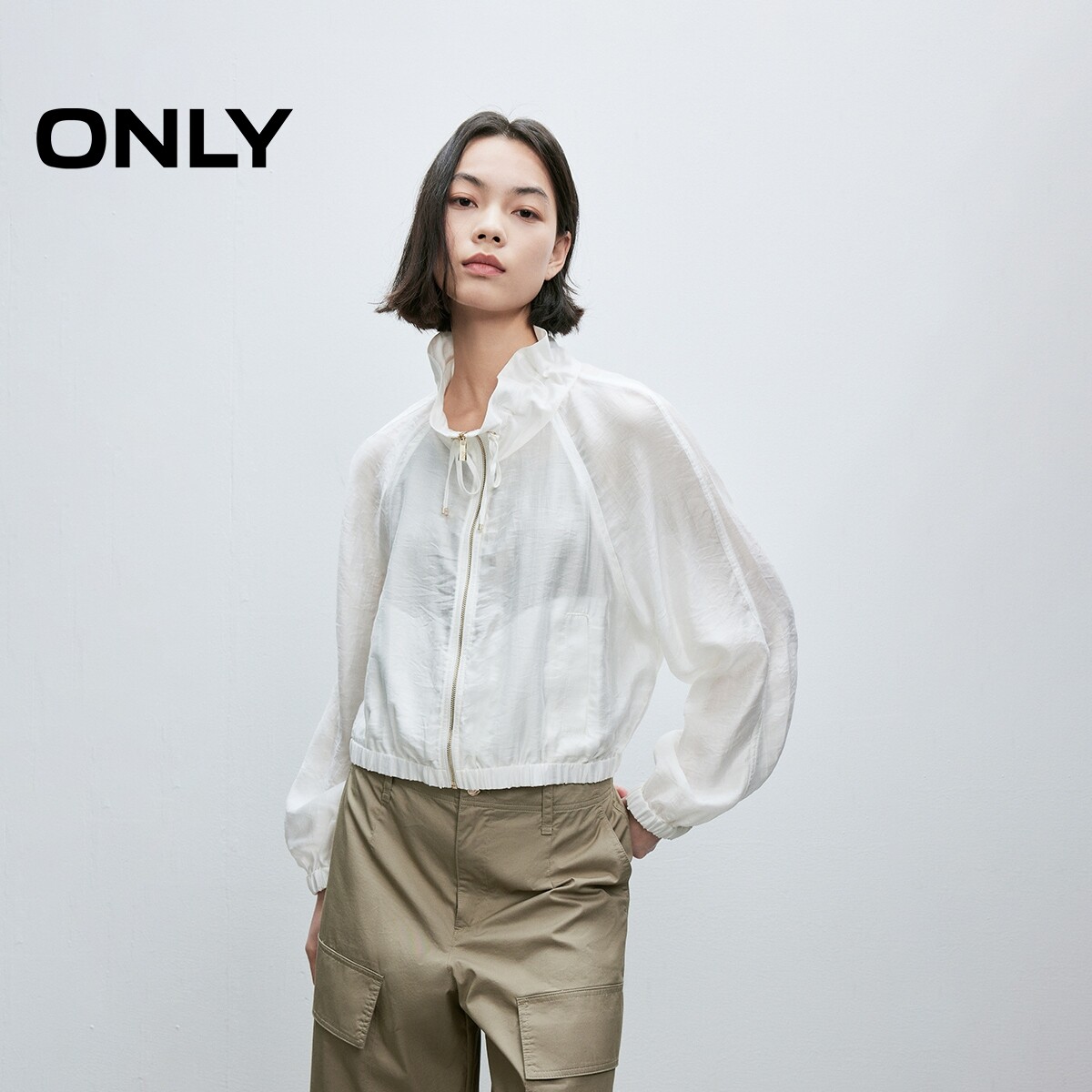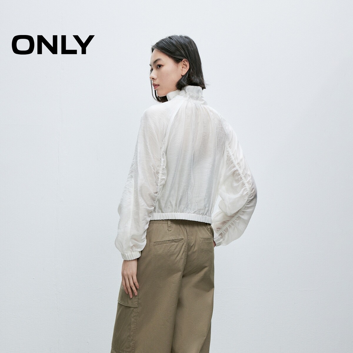 【ONLY奥莱】春季新款设计感抽绳立领宽松插肩剪裁纯色短款外套女