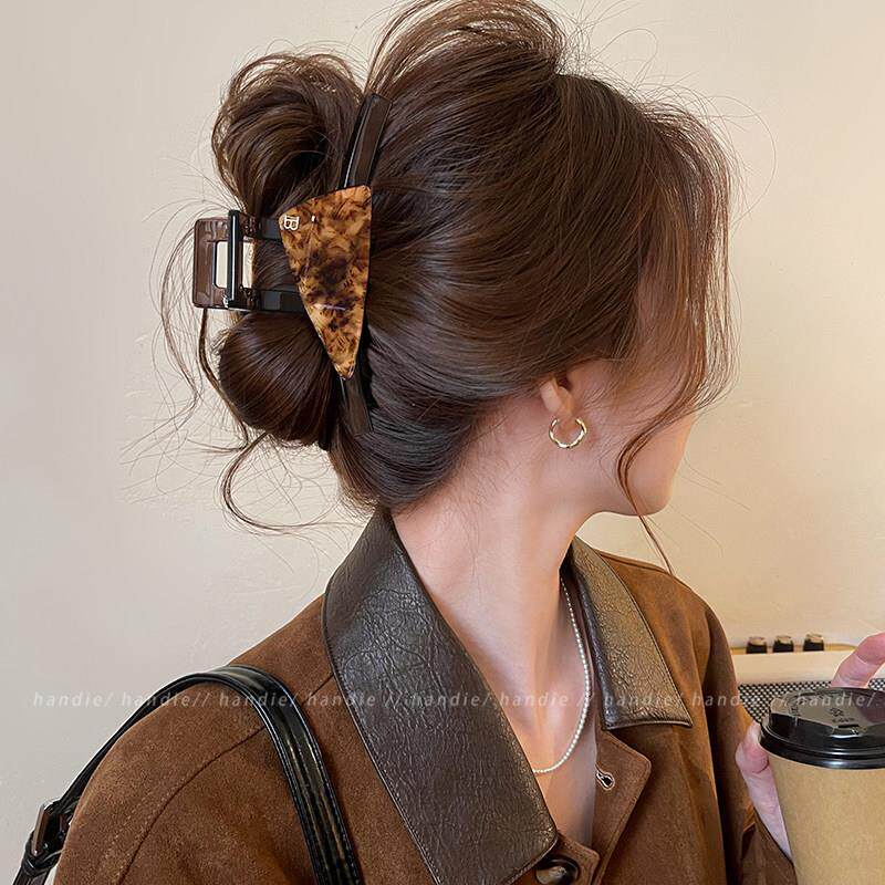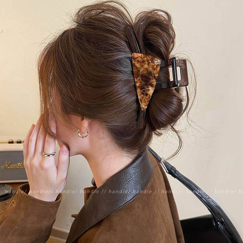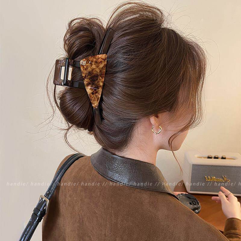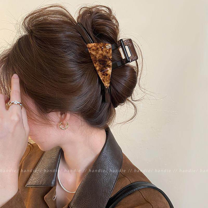 复古高级感醋酸豹纹三角抓夹女后脑勺盘发鲨鱼夹大号气质发夹发饰