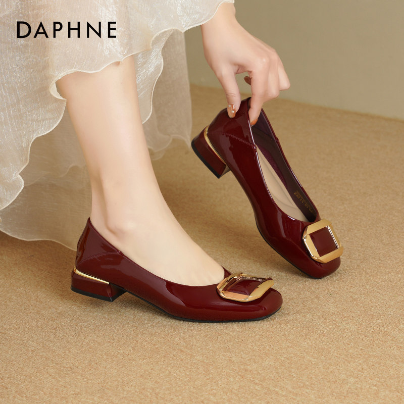 达芙妮红色单鞋女2026新款春季法式婚鞋粗跟通勤单鞋百搭高跟鞋女