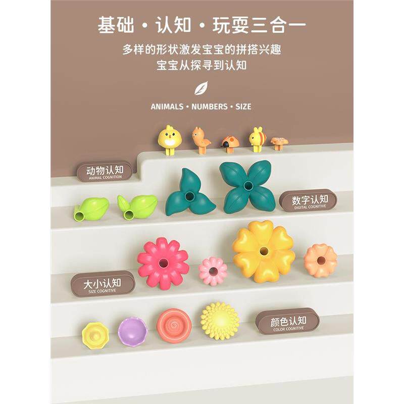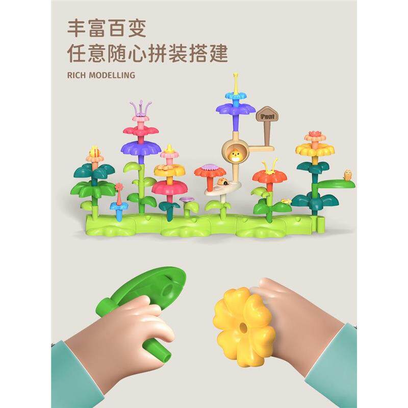 儿童百变花园拼插花园积木套装DIY益智插花拼装拼搭花丛玩具