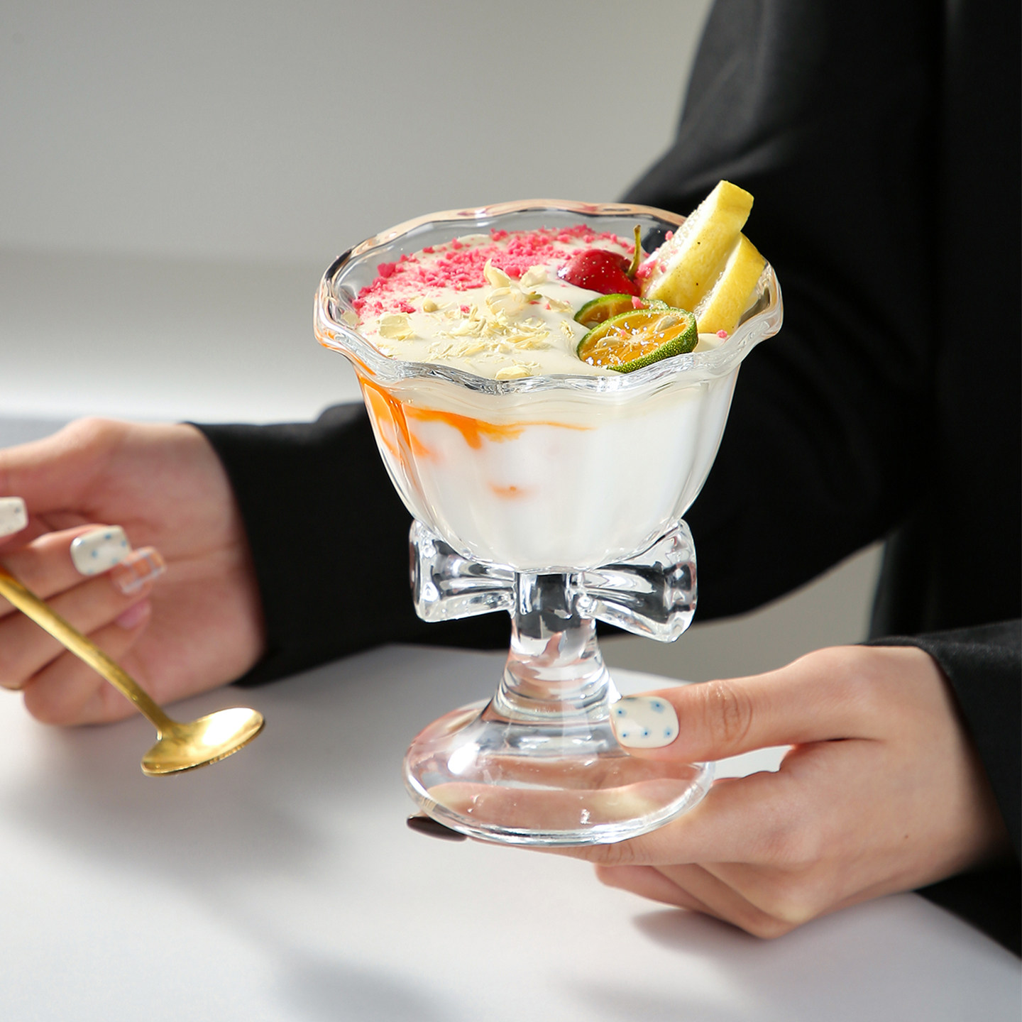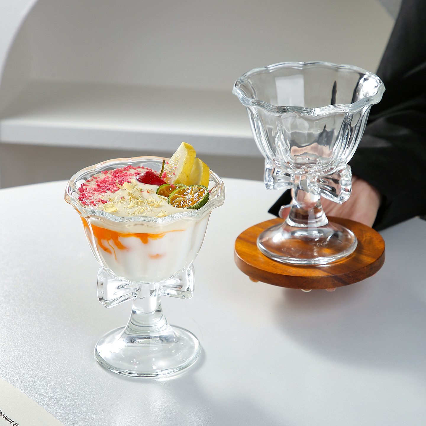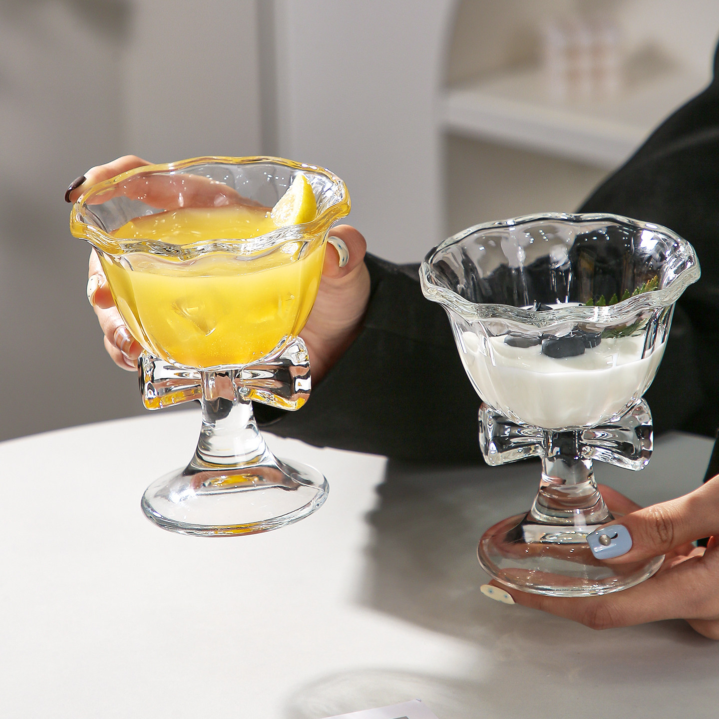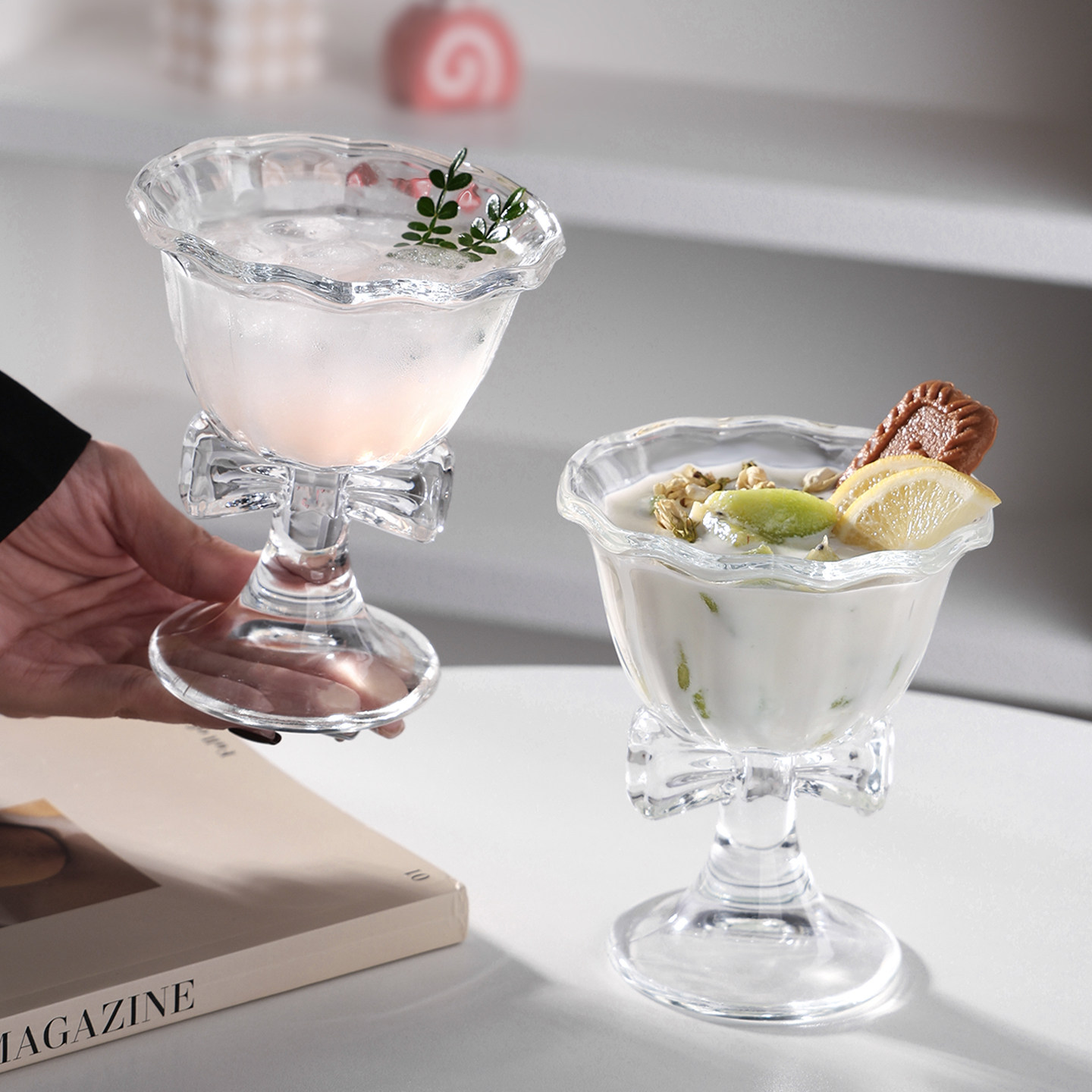 高颜值蝴蝶结玻璃杯子高脚红酒冰淇淋甜品杯女生微醺酒杯果酒香槟