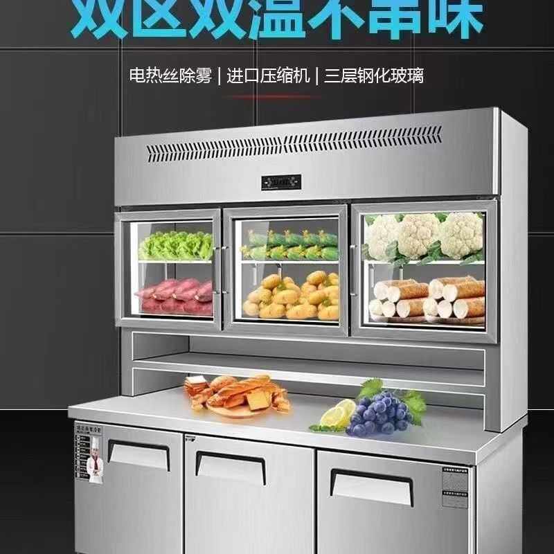 不锈钢厨房多功能子母冰柜商用双温冷冻展示柜冷藏保鲜冰箱工作台