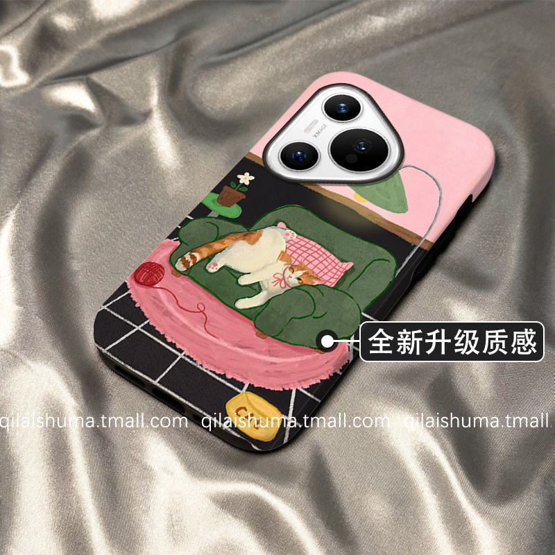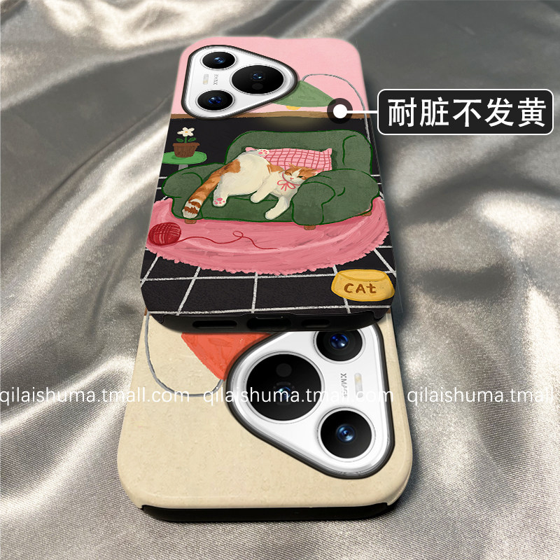 柒莱二合一菲林壳适用于华为pura80/70pro手机壳新款mate60小众沙发猫咪插画nova14/13/12男女11硬50防摔40套