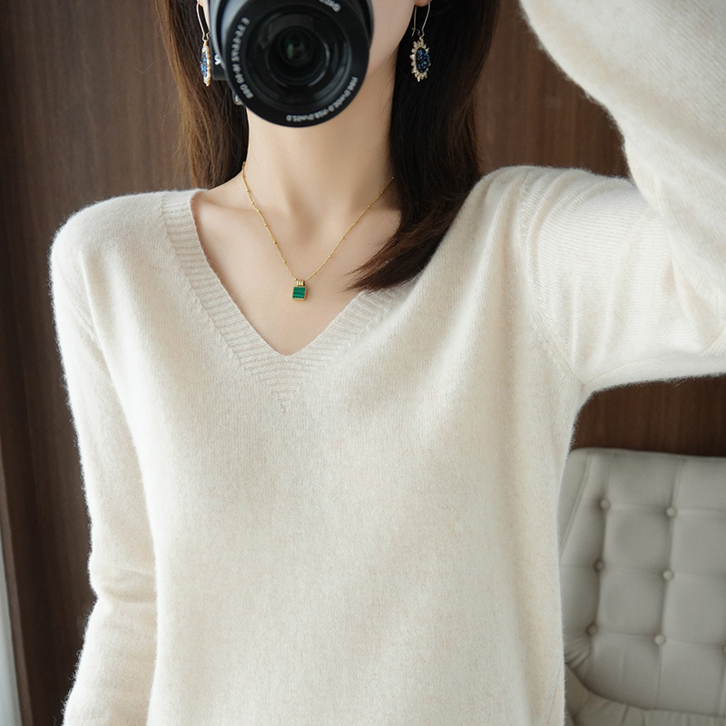 2025秋冬新款羊绒衫女低圆领宽松显瘦毛衣百搭100羊毛针织打底衫