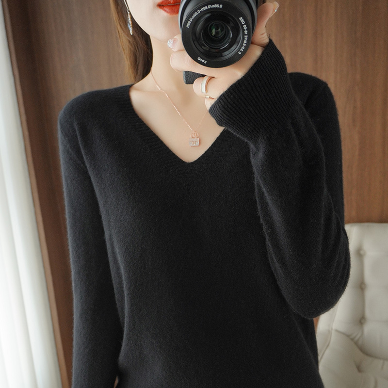 特价清仓春秋薄款羊绒衫女士V领短款套头毛衣纯色长袖针织打底衫