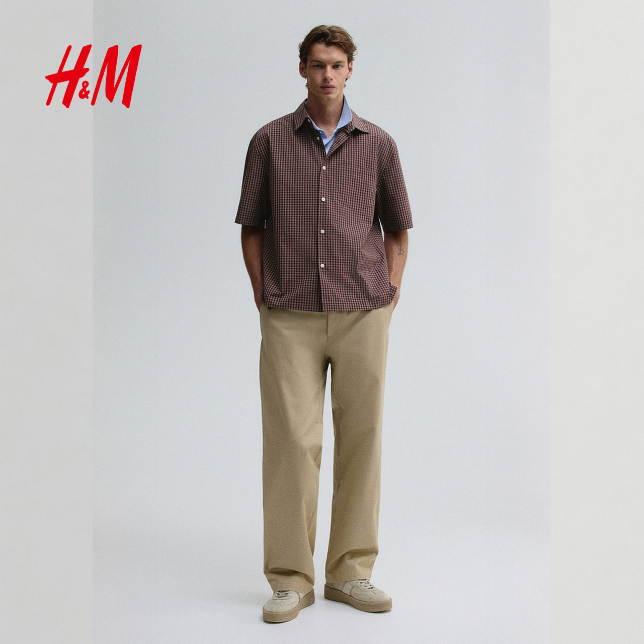 HM男装上衣春季标准版型短袖衬衫1295322