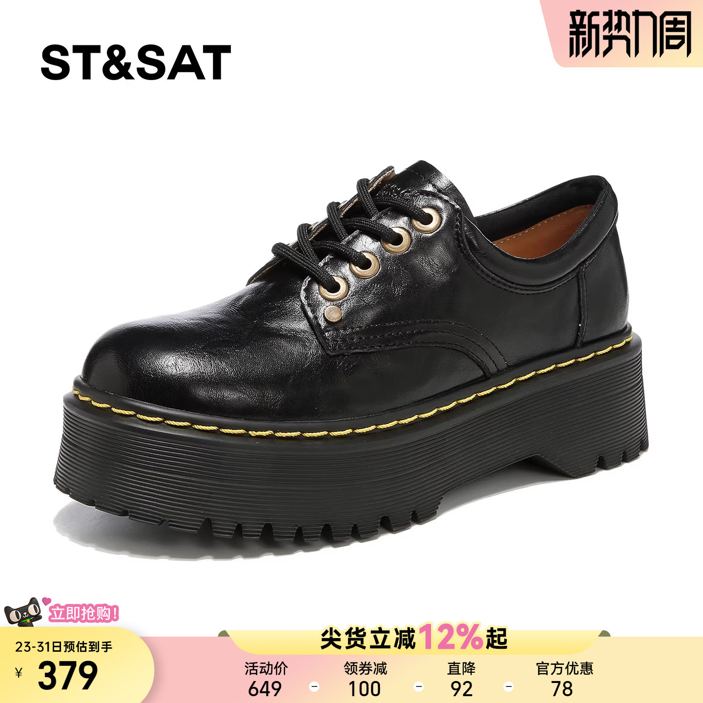 星期六厚底乐福鞋女春季新款黑色复古英伦气质小皮鞋百搭深口单鞋