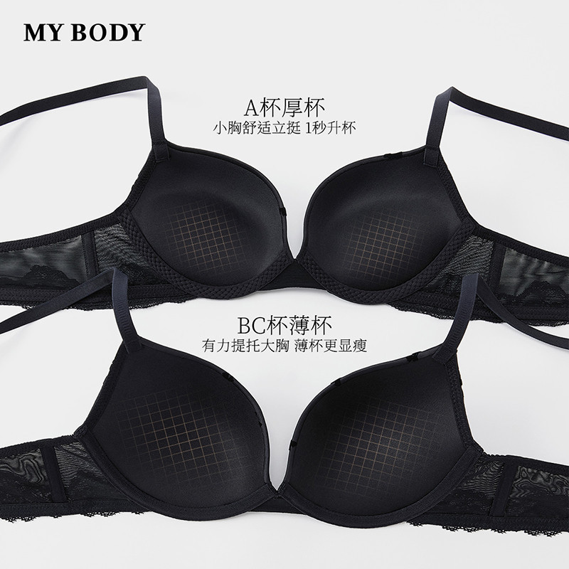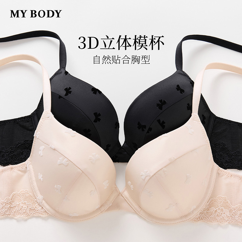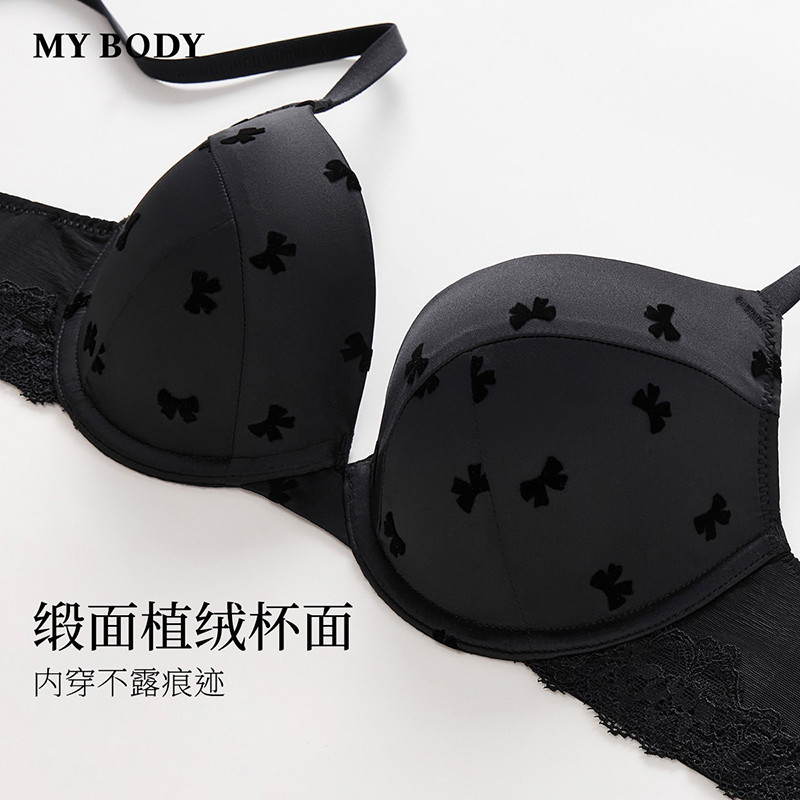 MYBODY商场同款新款内衣小胸聚拢显大性感缎面植绒蝴蝶结无痕文胸