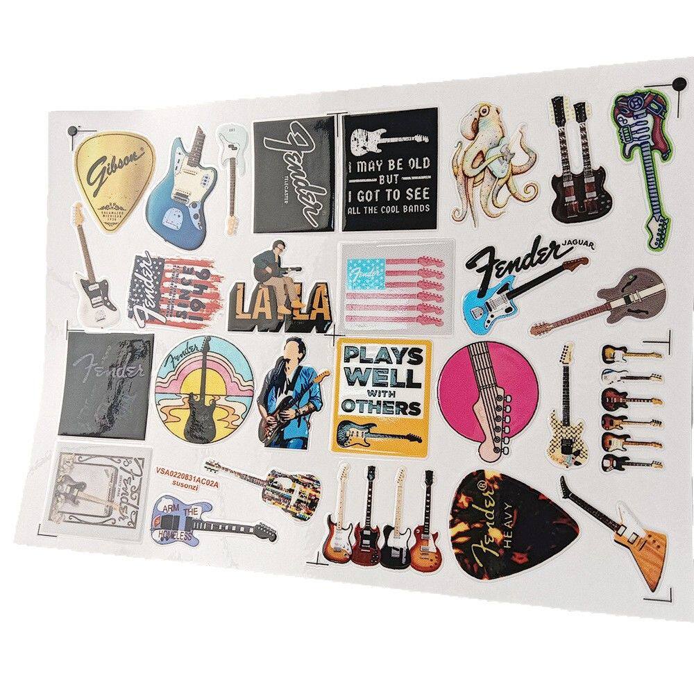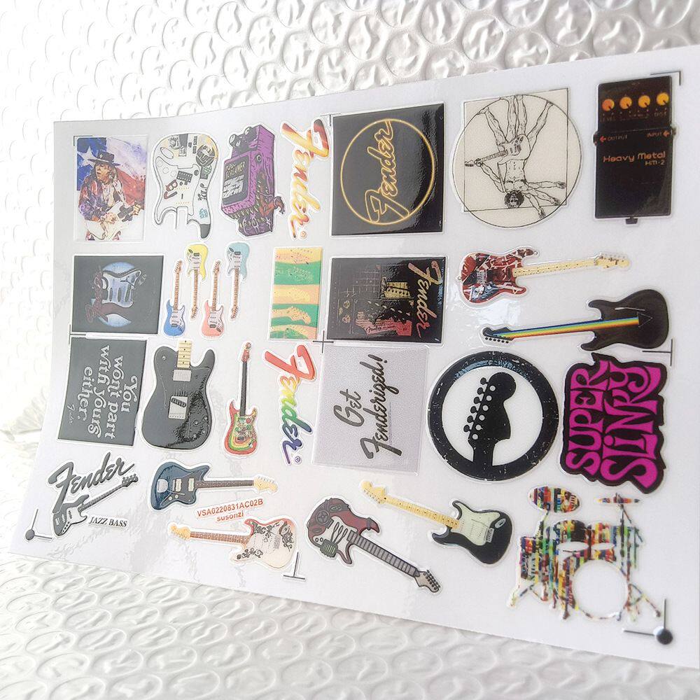 卡通乐器吉他镂空立体防水笔牙刷水杯装饰贴纸UV转印贴水晶标定制