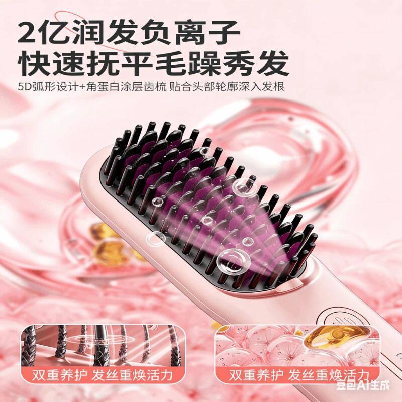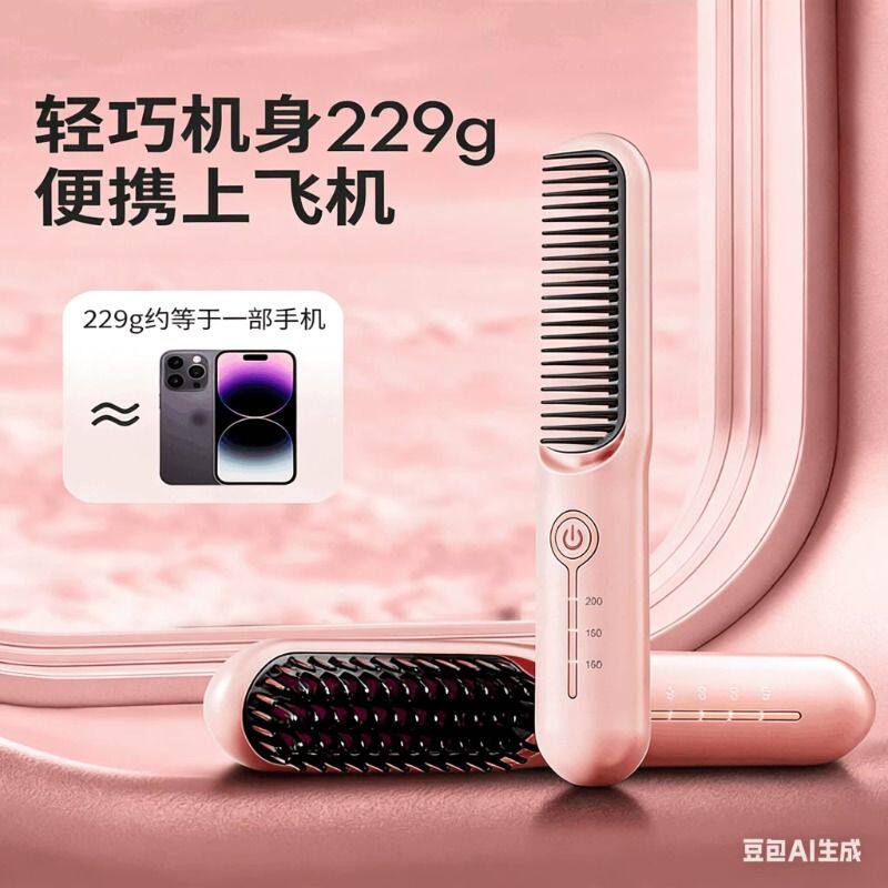 无线直发梳负离子不伤发蓬松高颅顶神器直卷两用夹板卷发棒电梳子