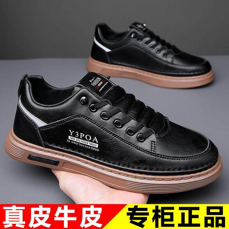 蜘蛛王男鞋2024新款春季韩版运动板鞋潮流百搭休闲皮鞋透气软底小