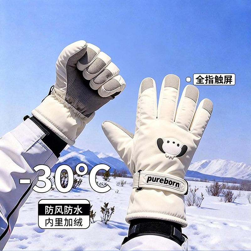 滑雪手套女士冬季可触屏防寒风加绒加厚保暖骑行电动车御寒手套男