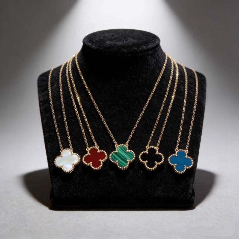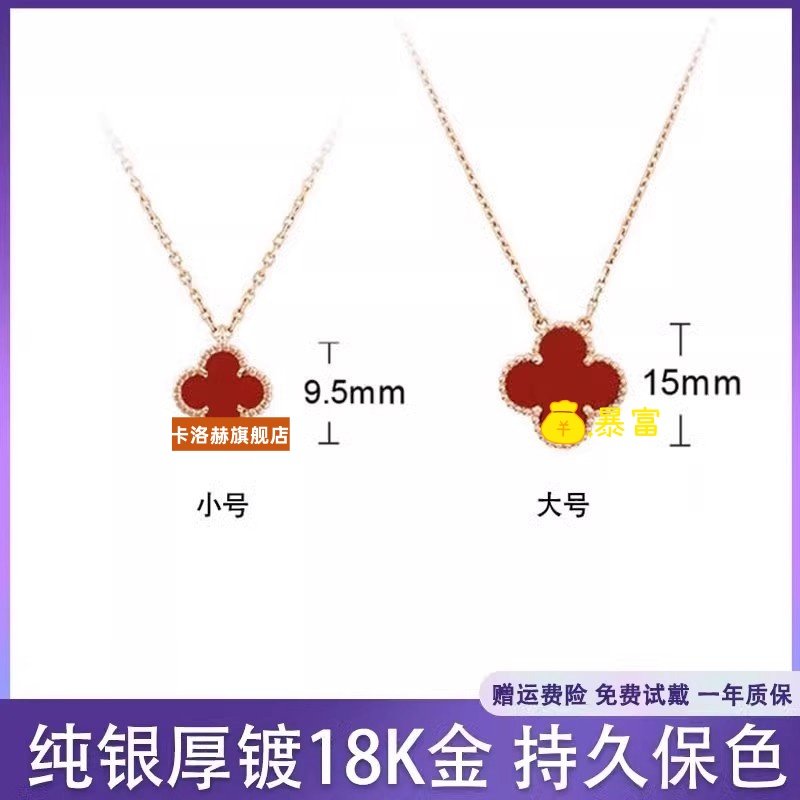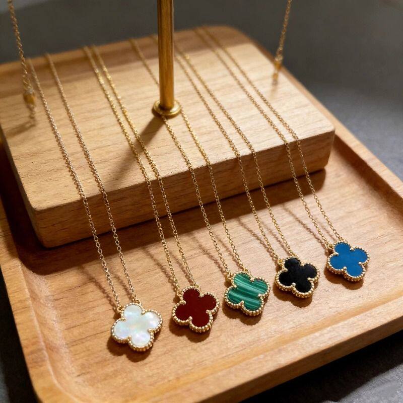 Gin.SHOMEL四叶草项链女轻奢小众玛瑙贝母锁骨链礼物纯银黄金精致