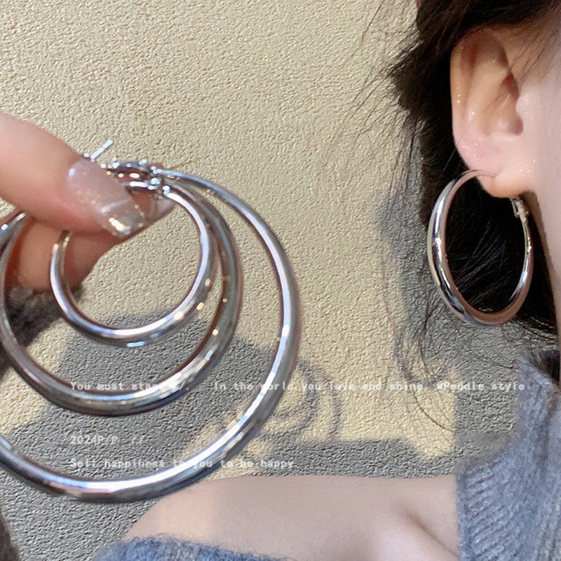 银色素圈耳环女夸张大耳圈2025新款爆款高级感圈圈耳饰耳圈耳夹