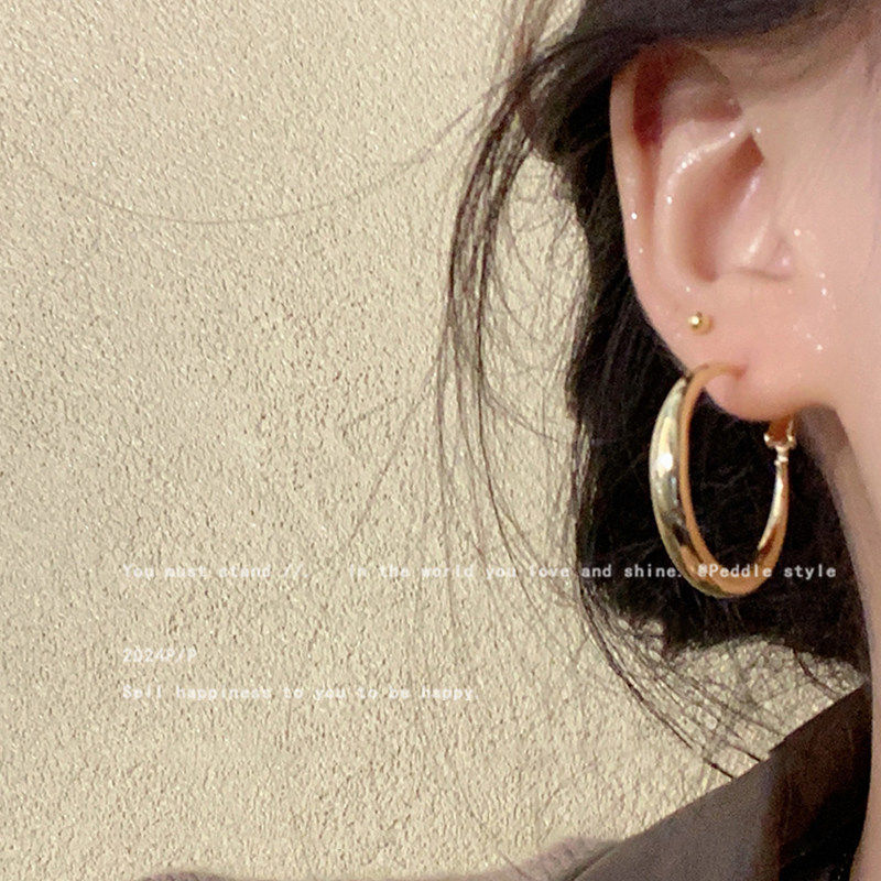 法式圈圈耳环2024新款爆款耳钉小众设计素圈耳圈耳扣女高级感耳饰