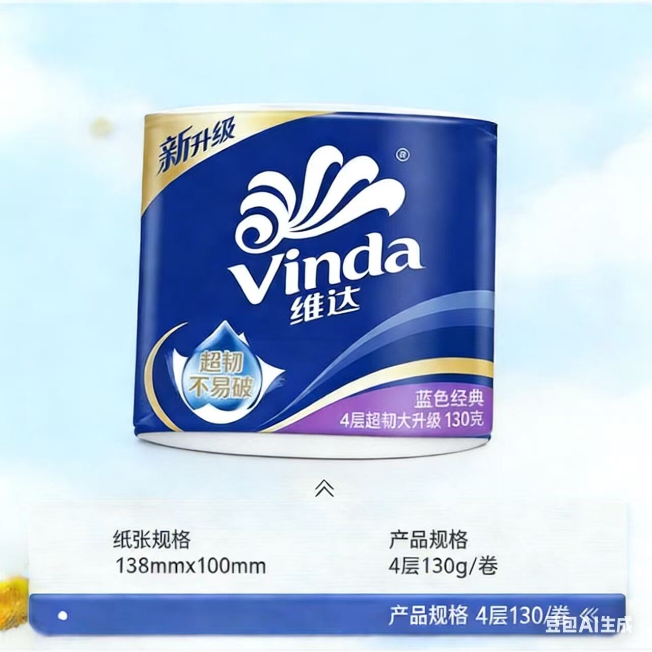 【孙颖莎推荐】维达卷纸蓝色经典卫生纸巾四层家庭装有芯卷纸厕所