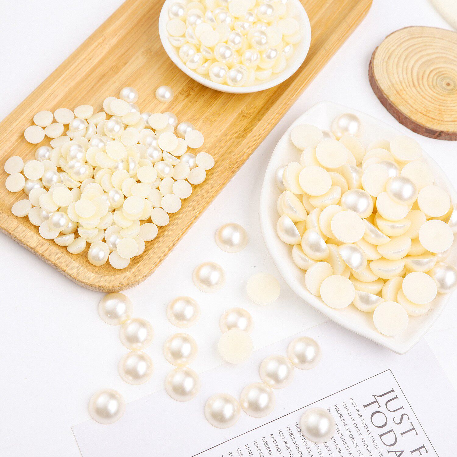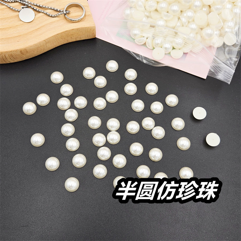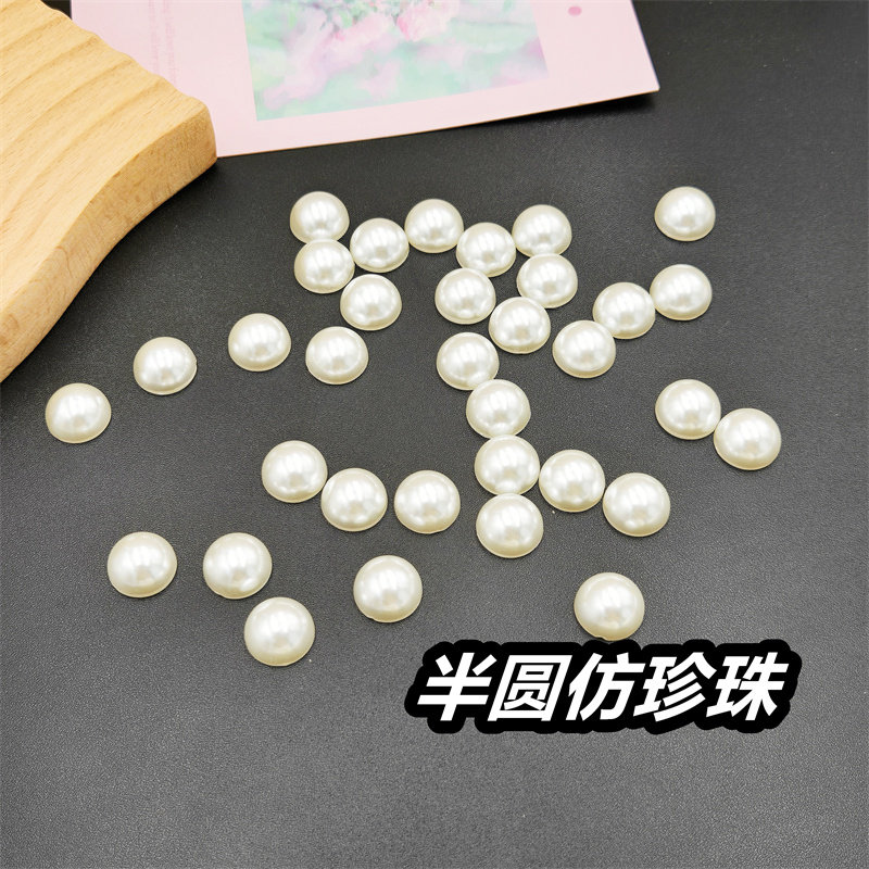 半面仿珍珠半圆平底圆形珠子米白色贴片diy手工发饰发夹饰品配件