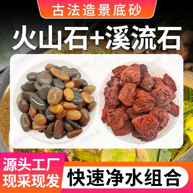 天然火山石溪流石鱼缸造景套餐底部砂石古法养鱼专用装饰铺底颗粒