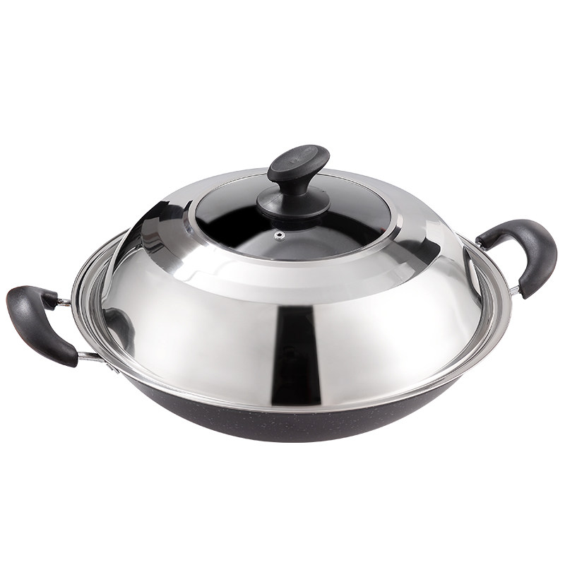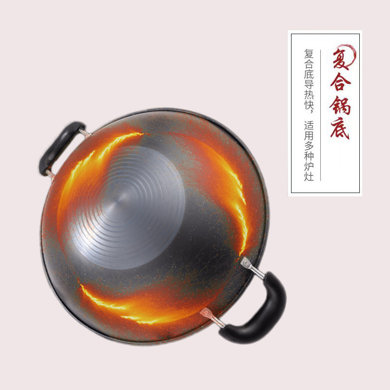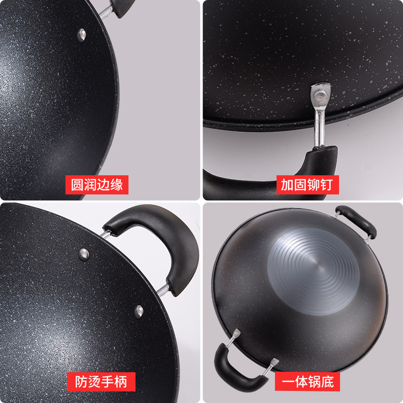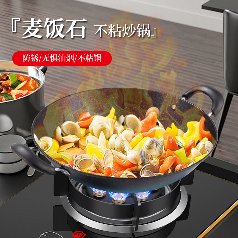 麦饭石不粘锅家用炒菜锅多功能老式双耳加厚大号锅燃气灶专用锅具