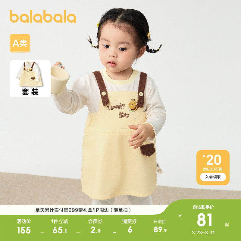 巴拉巴拉宝宝春装女童长袖套装儿童衣服背带裙两件套可爱活力洋气