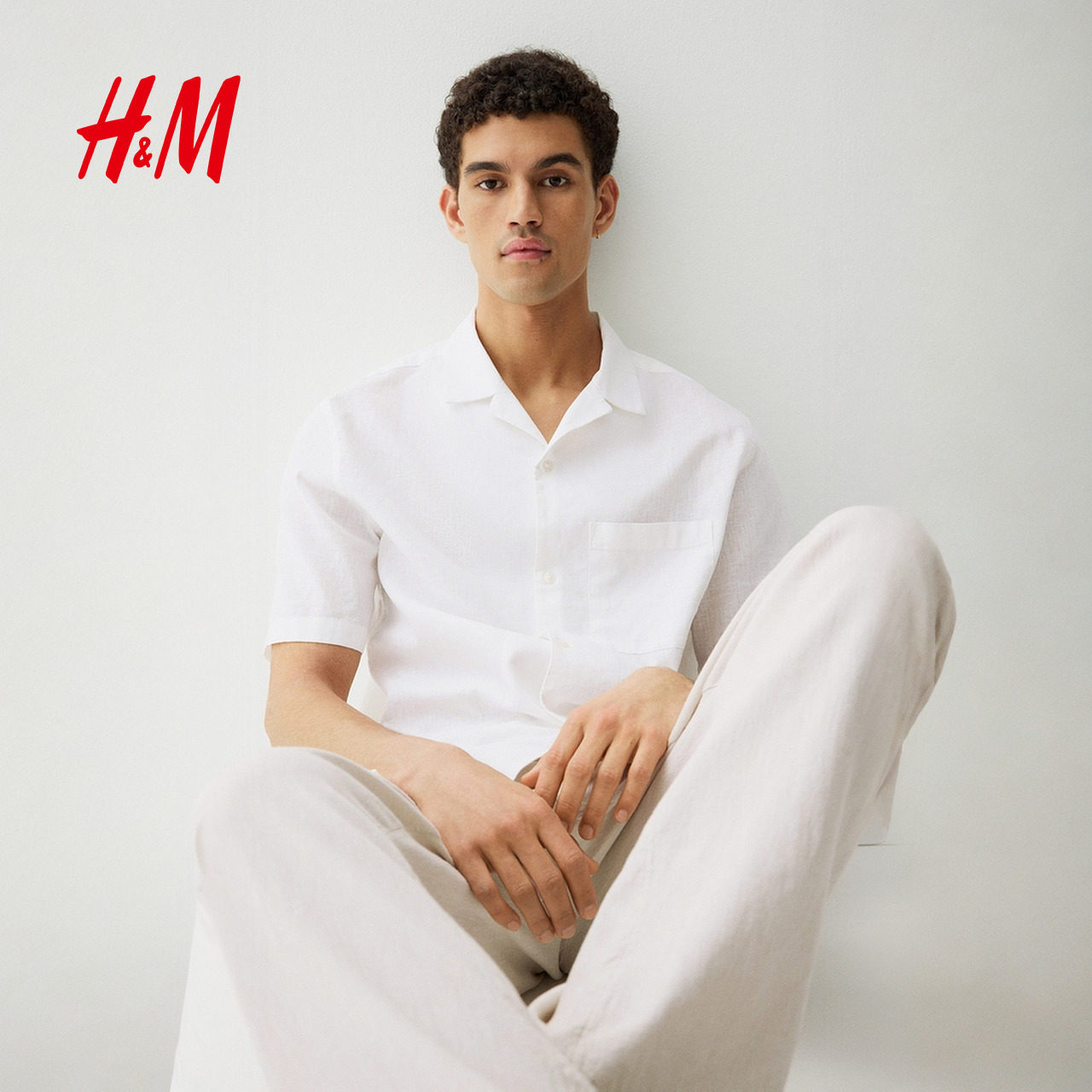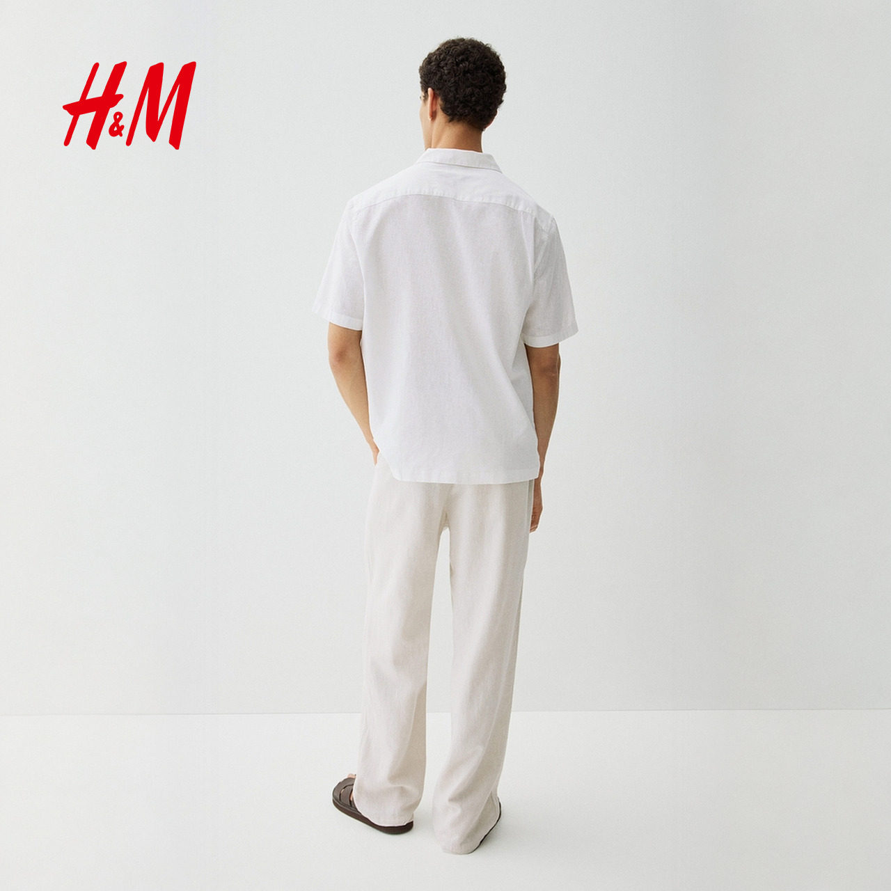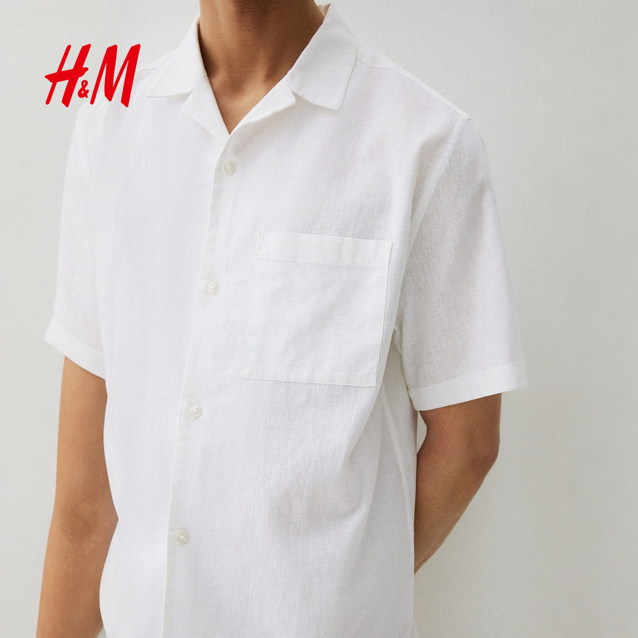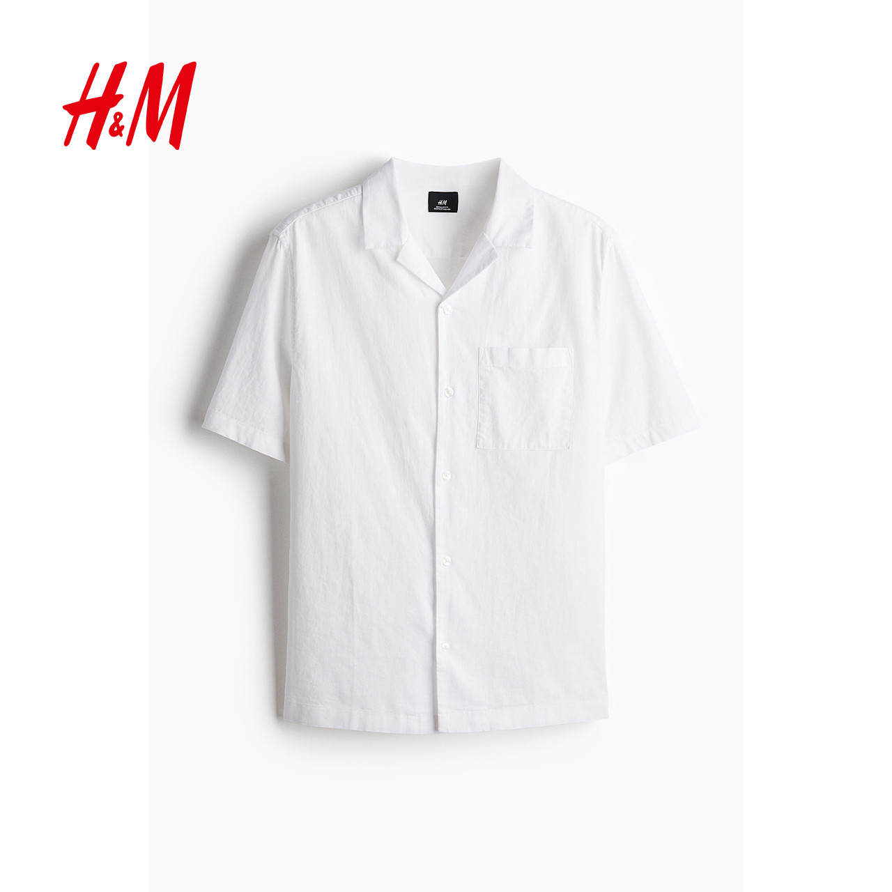 HM男装古巴领衬衫2025冬季新款潮流通勤亚麻混纺短袖衬衣1256946