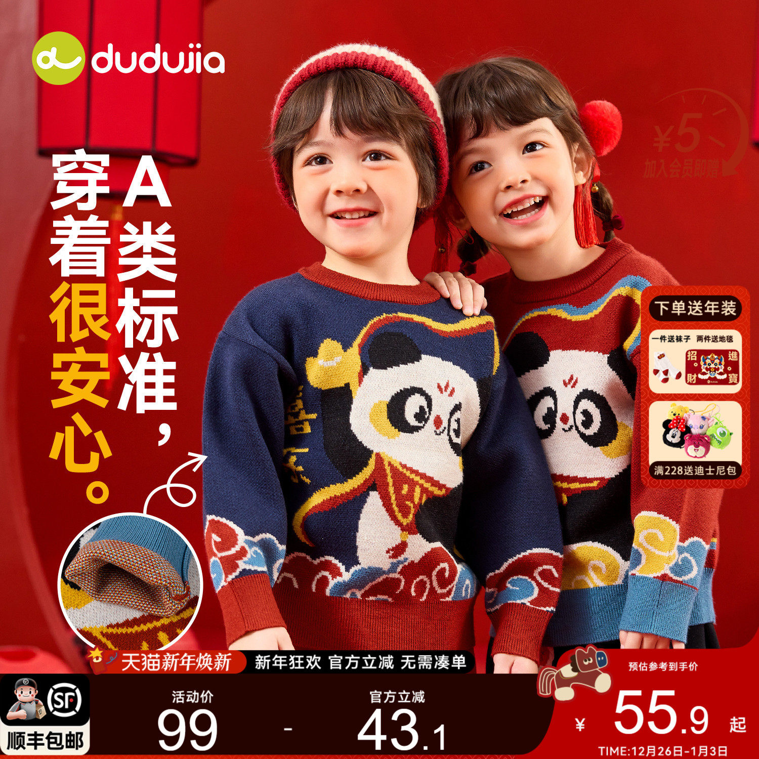 dudujia宝宝毛衣唐装儿童拜年喜庆男童冬装针织衫女童年装上衣冬a