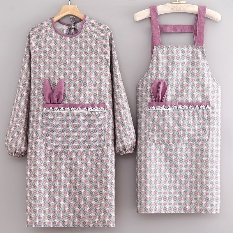新款棉布耐磨围裙长袖厨房家用防污罩衣透气围腰做饭上班工作服女