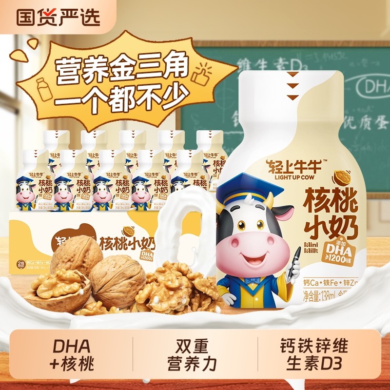 轻上DHA优质核桃小奶饮品儿童蛋白质含钙铁锌维生素D3营养早餐