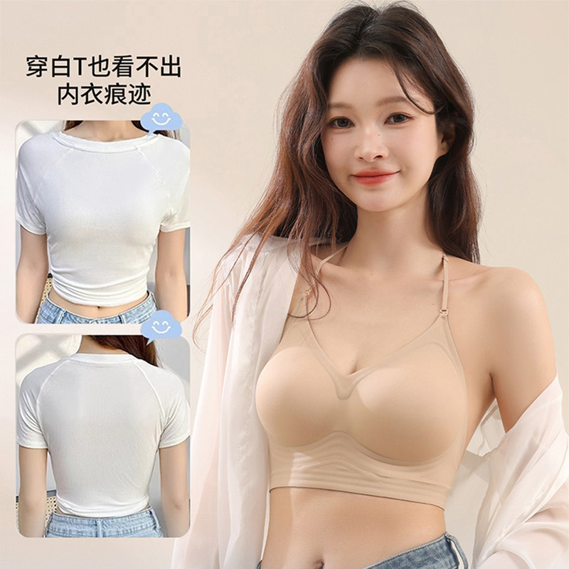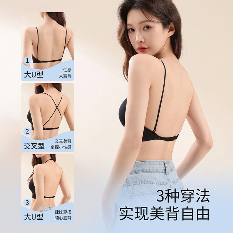 挂脖美背内衣女小胸聚拢细肩带无痕粉底液隐形u型露背吊带文胸罩