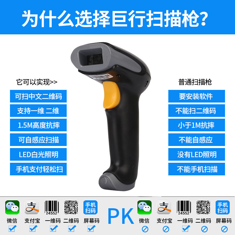 巨行有线二维码扫描枪手机支付超市收银快递扫码枪条码扫描器农资二维码扫描器农药兽药追溯码扫描枪