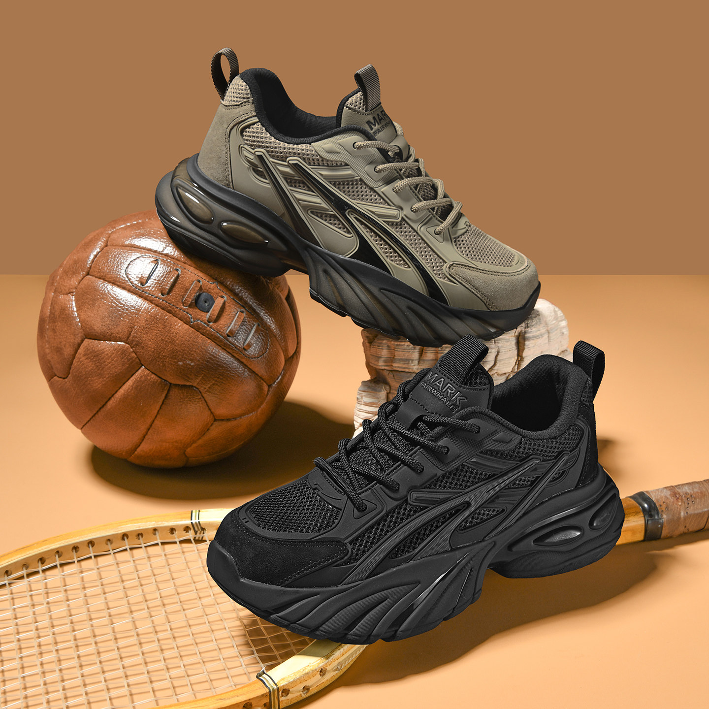 马克华菲鞋子男鞋春季新款老爹鞋男椰子网面鞋休闲潮鞋增高运动鞋