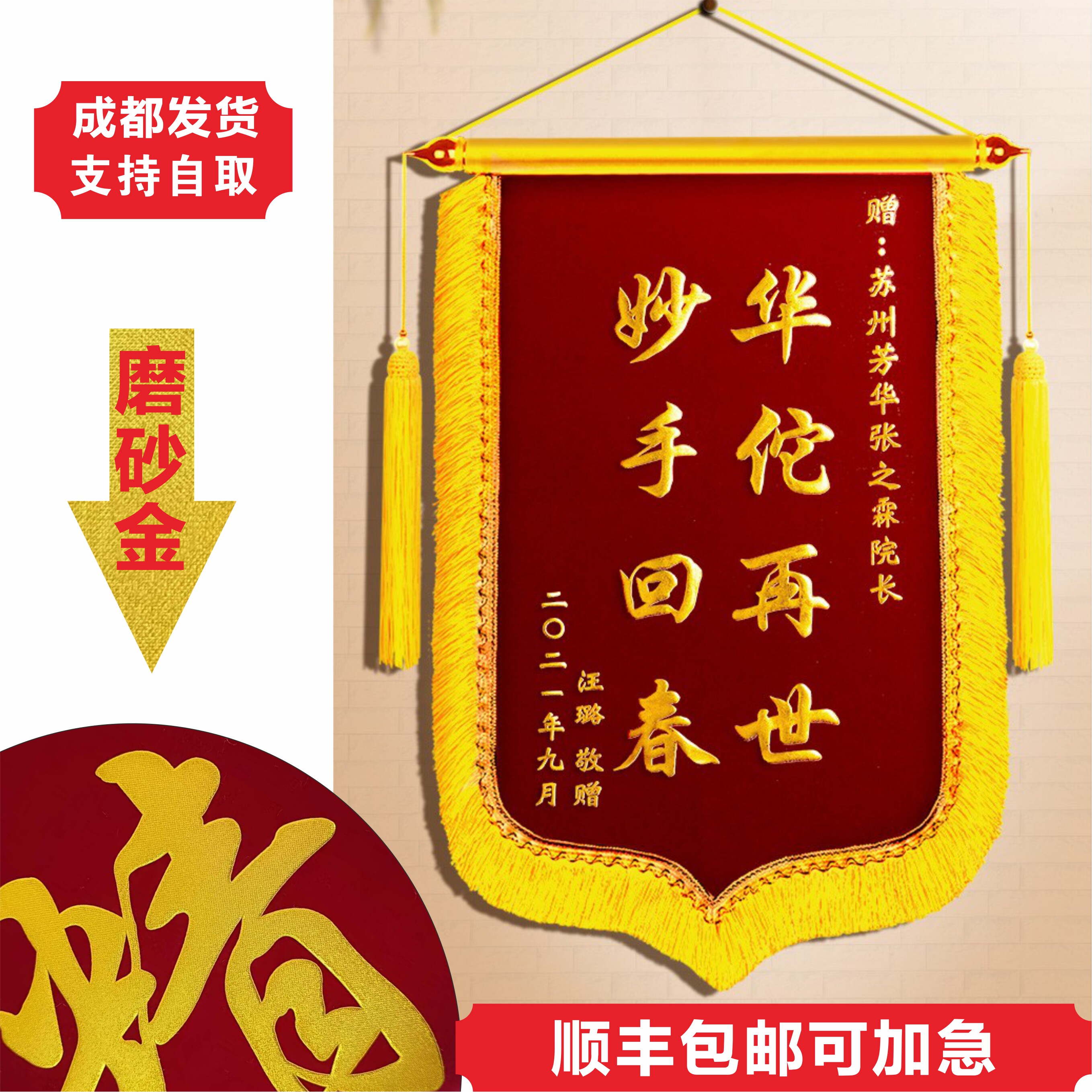 锦旗定做老师月嫂医生教练物业美容院生日幼儿园定制高档旌旗制作