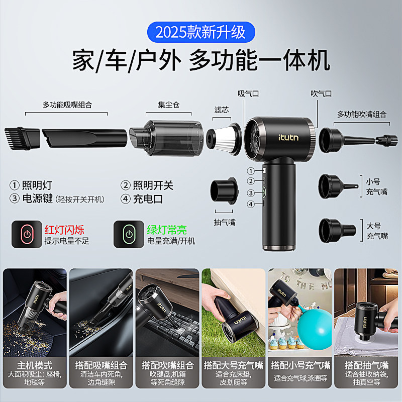 爱图腾迷你Y8车载吸尘器家车两用无线手持超强吸力汽车内吹吸一体机电脑键盘吹尘枪桌面缝隙除尘清灰清洁神器