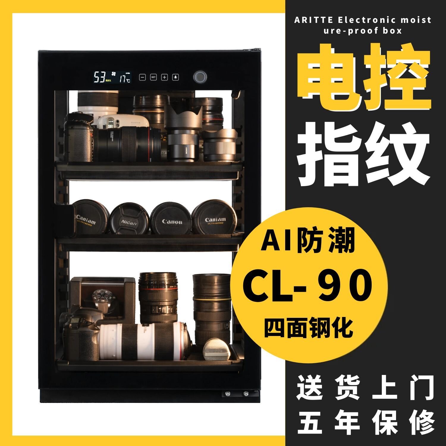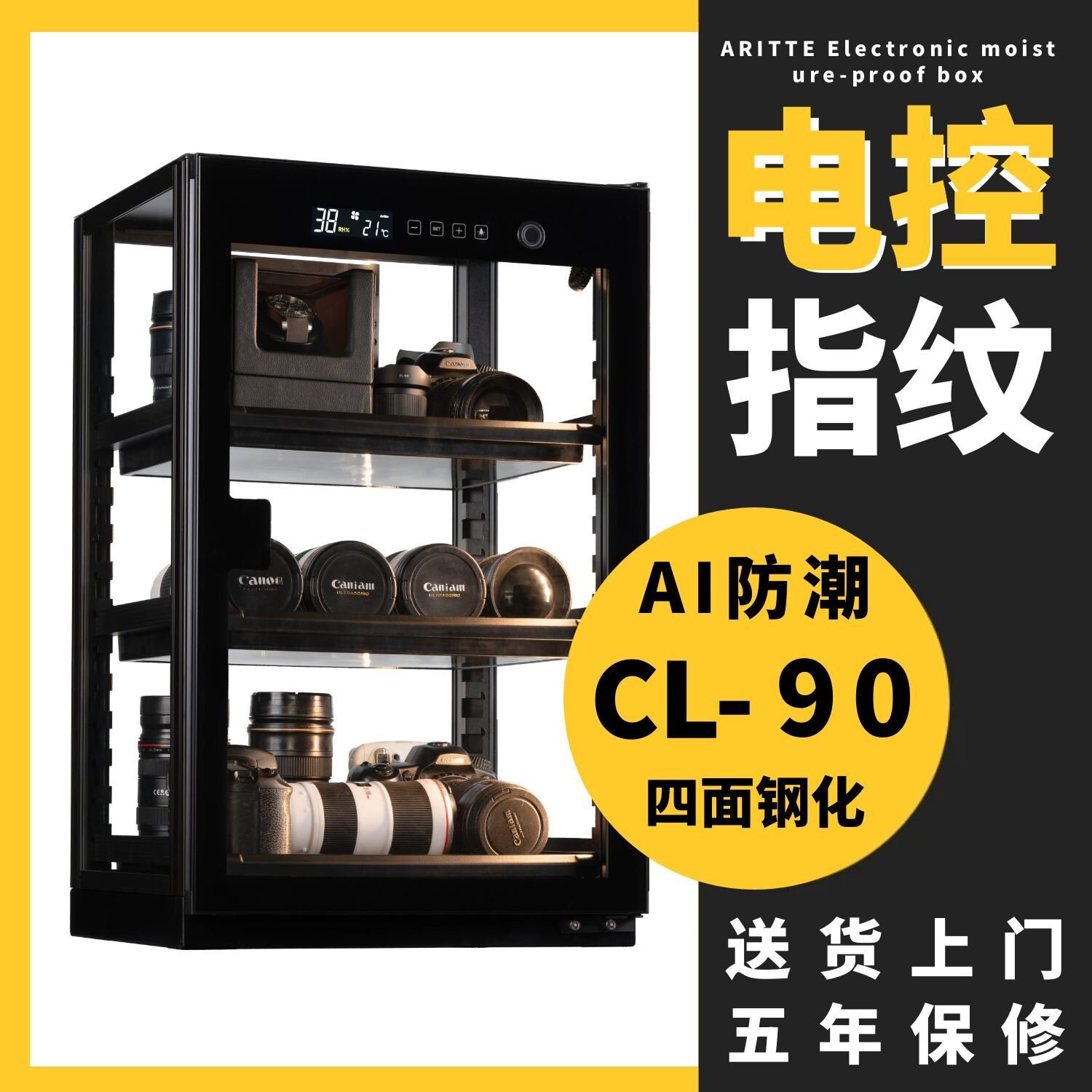 艾励特指纹锁透明相机防潮箱电子密封箱摄影器材大号存茶叶保湿吧唧收纳柜微单反镜头干燥箱专业包包手袋90L